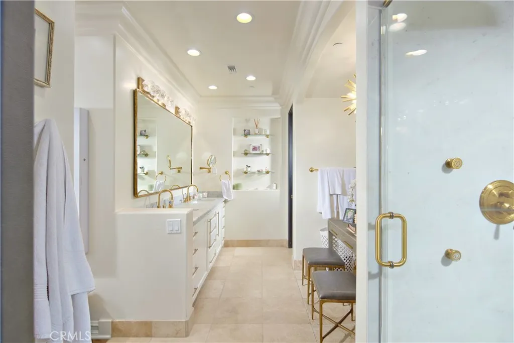 LONG-TERM ($40,000/mo) OR SHORT-TERM ($80,000/mo) FURNISHED RENTAL. From its exclusive setting on the ocean side of Pacific Coast Highway in Laguna Beachs guard-gated Emerald Bay collection, this luxurious European-stye villa reveals tranquil ocean, bay, Catalina Island and sunset views. Offering three levels of sublime living space in approximately 3,719 square feet, the custom five-bedroom, four-and-one-half-bath residence easily caters to your preferences, whether you enjoy relaxing at home with loved ones, hosting extravagant gatherings, or weaving a bit of both together into one incomparable lifestyle. Stunning crystal chandeliers are featured throughout and make an especially grand first impression in a formal entry. The main level effortlessly combines a fireplace-warmed family room with built-ins and surround sound, an ocean-view dining room, and a remodeled kitchen into a borderless space that opens to a large view terrace, an intimate Juliet balcony, and covered ocean-view deck with fireplace. Showcasing custom mocha Shaker cabinetry, the island kitchen is characterized by a full backsplash, stone countertops, and top-of-the-line appliances including a six-burner range with griddle and custom hood. An elevator and a dramatic staircase provide easy access to all three levels. Tray ceilings, stone and wood flooring, patterned carpet, marble bath finishes, indoor/outdoor audio, designer wall treatments, and fashionable gold hardware and plumbing fixtures shine throughout. A romantic ocean-view balcony enhances the primary suite, which hosts a sitting room with firepl