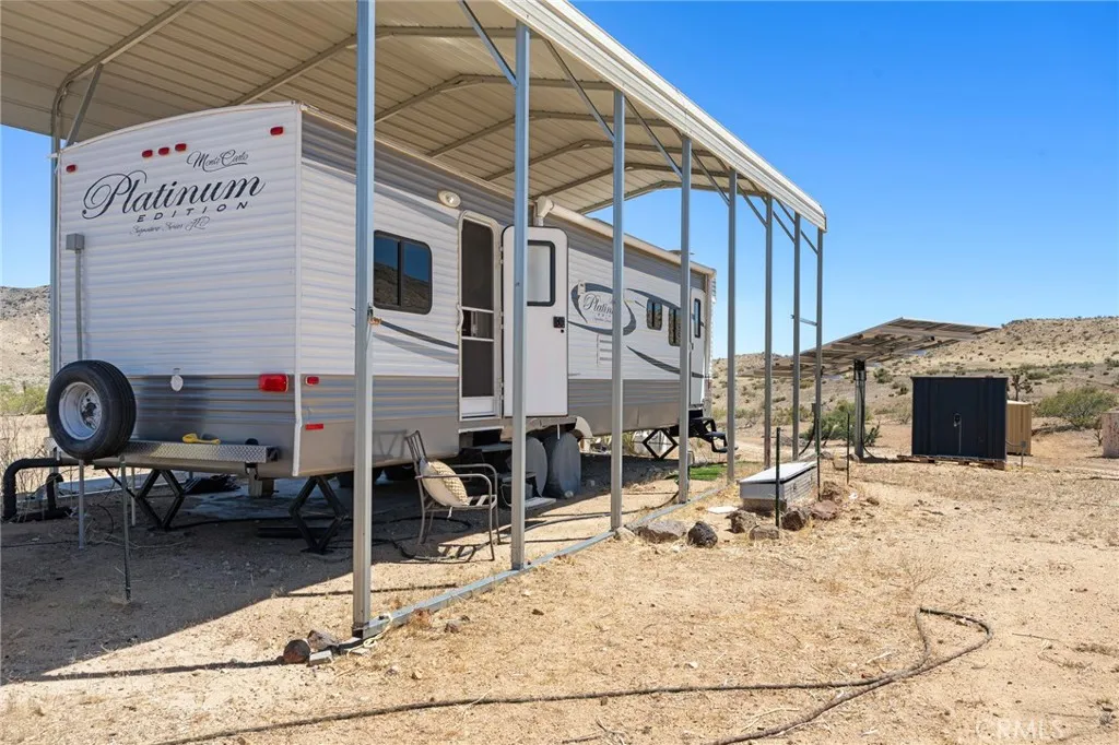 20-Acres Pipes Canyon Remote Land with WORKING WELL for off-grid water!!! Tucked away atop of knoll overlooking the canyon, this choice retreat includes personal-property living structures, including a cozy RV (see pics) and a container with sliding glass door and window already installed to get the project going, whether as storage or eventual living space. Also includes a large storage compound composed of two containers set apart to create a courtyard-like area, with a roof built over the open space, enclosing it to create the space of more than three containers! Artists, Naturalists, Welders looking for a studio, musicians looking for a hang, ever storage buffs, this property is for you, a thoughtfully set up off-grid basecamp connected to solar power and septic, making it a comfortable place to stay while you plan your New Construction SFR Dream Home. Located in the coveted Pipes Canyon area, surrounded by iconic lava buttes, striking boulder formations, and bordering protected Sand to Snow National Monument lands. Convenient to Joshua Tree, Yucca Valley, Pioneertown, La Copine, and the historic Giant Rock Meeting Room, with Big Bear within easy reach, Scorpion Ranch is a rare opportunity for those seeking seclusion, scenery, and a true High Desert escape. CASH ONLY - NO LOANS. Address is not official, therefore do not follow GPS. Either call you agent of find via APN: 0594-271-36
