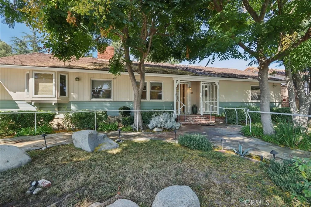 Charming Ranch-Style Retreat in the Heart of Old Granada Hills. Nestled in a picturesque Granada Hills neighborhood, this beautifully maintained single-story ranch home offers timeless character, thoughtful updates, and incredible potential. Situated on an expansive 14,927 sq ft lot, this 4-bedroom, 4-bath home spans 2,271 sq ft of inviting living spaceperfect for entertaining, relaxing, or expanding your vision. Step inside to discover a light-filled kitchen adorned with granite countertops, travertine backsplash, stainless steel appliances, a built-in refrigerator, and a charming bay window. The spacious eat-in area flows effortlessly into a formal dining room, ideal for hosting family and friends. The warm and inviting living room is the heart of the home, featuring stunning wood-beamed ceilings, a classic marble fireplace, and elegant French doors that open to your private backyard escape. With four generously sized bedrooms, including two en suites, theres room for everyone to unwind. The primary suite is a true sanctuary with a walk-in closet, French doors to the backyard, and a luxurious bath complete with a soaking tub and separate shower. A dedicated indoor laundry room adds modern convenience, while original details and tasteful upgrades preserve the homes unique charm. Outside, the possibilities are endless. Entertain year-round under the expansive 660 sq ft L-shaped covered patio, enjoy cozy evenings around the gas firepit, or soak in the rock spa under the stars. The huge backyard is a blank canvaswhether you envision lush gardens, a pool, or a playground, ther