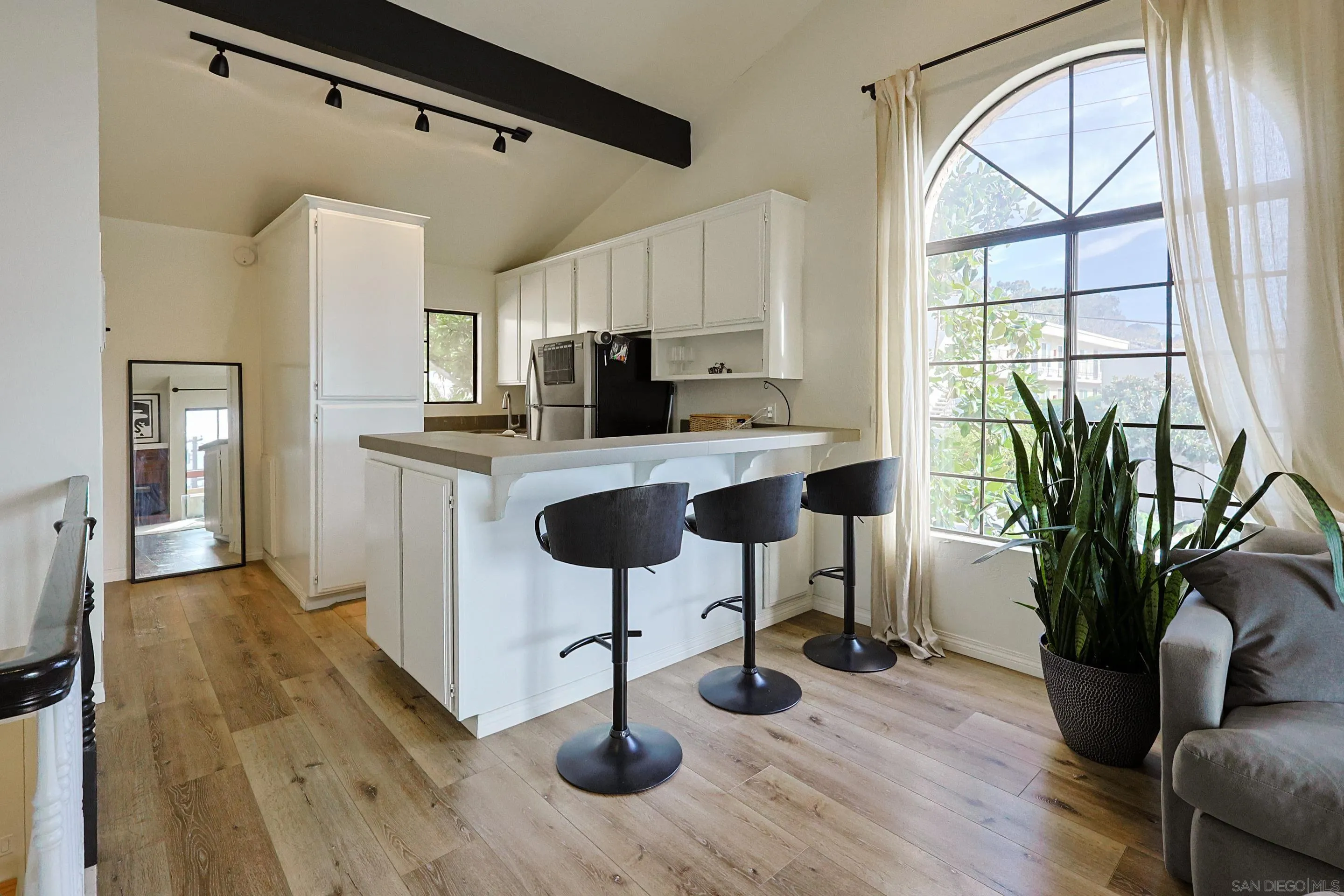 Well-maintained and thoughtfully designed two-story 1-bedroom, 1.5-bath residence located in the heart of Linda Vista, offering exceptional access to San Diego’s most desirable destinations. This centrally located home provides quick freeway access and is just minutes from the beach, Fashion Valley Mall, Downtown San Diego, and the airport, making it an ideal primary residence or investment opportunity. Upon entry, the home features a private bedroom and full bathroom on the main level, creating a quiet and functional retreat. The upper level opens to the main living area with an inviting living room, updated kitchen, and convenient half bath—perfect for everyday living and entertaining. The unit has been recently refreshed with new interior paint and durable LVP flooring, giving it a clean, move-in-ready feel. The attached garage is easily accessed via interior stairs, adding everyday convenience. Offered for the first time since the early 2000s, this property presents a rare opportunity to own a well-cared-for home in a highly central San Diego location with excellent long-term value.
