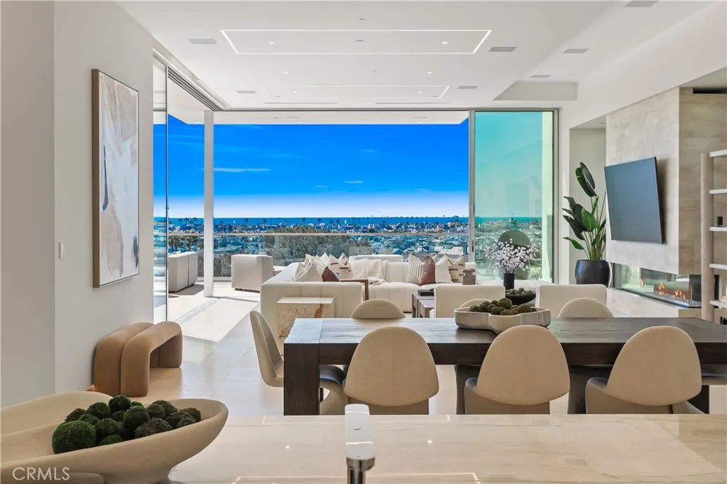 1119 Dolphin Terrace, a generational trophy property showcasing exceptional modern design and architectural excellence located in the heart of Corona Del Mar's coveted Irvine Terrace community. This meticulously crafted estate, taking six years to reach completion, spans approximately 10,200 sqft of pure luxury on a uniquely deep and expansive lot. This remarkable property boasts 5 bedrooms, including 2 primary bedrooms, and 8 baths, offering unparalleled comfort and sophistication. The interiors feature massive scale and soaring ceiling heights, creating a sense of grandeur that defines Southern California coastal living at its finest. Entertain with ease in the expansive living spaces, highlighted by a media wall with a jaw-dropping 219" LCD TV wall, a well-equipped bar + glass cellar, and two kitchens for culinary enthusiasts. Motorized pocket doors seamlessly blend indoor and outdoor living, leading to a spectacular 65' lap pool that invites you to relax and unwind while enjoying breathtaking ocean, jetty, Balboa, and coastline views. For those who prioritize health and wellness, the property includes a spacious wellness center offering full-size gym, sauna, steam room, and meditation area, ensuring a holistic approach to your total well-being. The attention to detail is evident throughout, making this estate one of the most captivating and exciting properties to ever be publicly offered for sale in Corona Del Mar. Additional features enhance the allure of 1119 Dolphin Terrace, such as its proximity to the Newport Beach Country Club and Fashion Island, placing world-cla