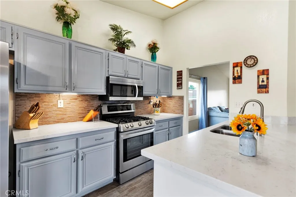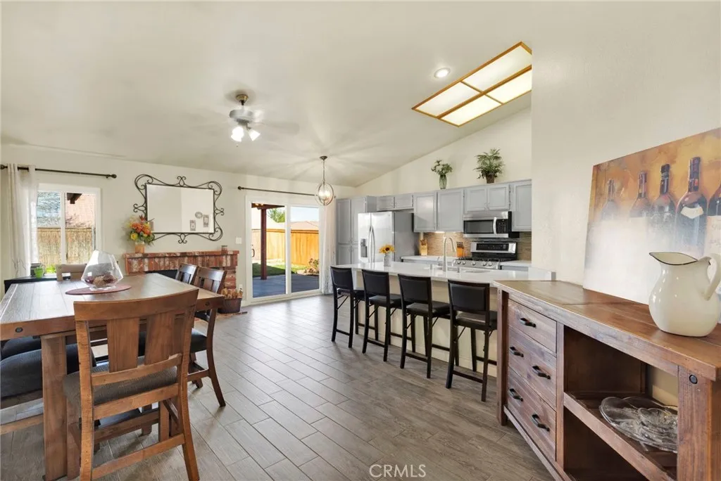 PAID OFF SOLAR!!! Walking through the double-door entry of 11224 Westbrook Drive, the loving care of this one-owner home is easy to notice. Located in South Adelanto, this neighborhood features sidewalks, streetlights, curbs, and gutters, with nearby schools, shopping, and dining. Its southern location also offers convenient access toward Victorville and the Cajon Pass, helping reduce commute time to the Inland Empire. The home features valuable updates, including paid-off solar, energy-efficient windows, wood-look ceramic tile flooring in the main living areas, updated kitchen appliances, painted cabinetry, quartz countertops, a wood-burning stove insert, Heater/Air Conditioner, and new garage door openers. The layout includes four bedrooms, two baths, and approximately 1,671 square feet of well-designed living space, along with a three-car garage. The kitchen features quartz countertops, a breakfast bar, updated cabinets, and appliances that include the refrigerator. Vaulted ceilings and large picture windows bring in natural light and create an open feel. A formal living room is complemented by an open family room, dining area, and kitchen, making the space comfortable for everyday living and gatherings. The primary bedroom includes three large windows, two closets, and a private bath with a dual-sink vanity. Three additional bedrooms and a full bath provide flexibility for family, guests, or home office needs. Outside, mature trees, lawn, and a raised rock garden add curb appeal. The backyard includes a large patio with a pergola-style cover, a covered side patio with f