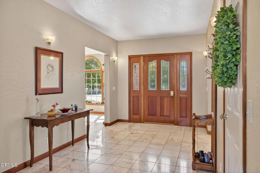 Welcome to 1125 Spring Street, an exceptional custom-built estate situated within the highly sought-after Olivas Mesa Private Community enclave of just 10 distinguished homes. Offered for the first time by the original owner and builder, this property radiates true craftsmanship, meticulous care, and timeless design inside and out.Set on 2.08 flat, fully usable acres, this single-level, nearly 4,000 sq. ft. residence combines refined country living with modern luxury. A grand circular driveway introduces the home, surrounded by lush landscaping, palm trees, and views of the majestic Ojai Valley and surrounding mountains.Inside, the formal entry leads to expansive living spaces highlighted by vaulted ceilings, a raised-hearth gas fireplace, and panoramic views. The entertainer's kitchen is designed for gatherings--featuring a large center island, custom cabinetry, breakfast and dinner area in kitchen along with a separate formal dining room. Additional spaces include a front den/study/piano room, second floor bonus/game room or guest suite, and a large laundry and utility room.The spacious primary suite comes with a large with a walk-in closet, walk-in shower stall, a separate oversized soaking tub and a private deck overlooking the Ojai valley--the perfect place to unwind and take in the sunset.Outdoors, the property becomes a resort-style oasis. Enjoy a sparkling pool with diving board and water slide, a raised spa, and a covered entertainer's pavilion complete with a changing room, BBQ area, and game zone. The manicured lawn, children's playhouse, and fenced pool area pro