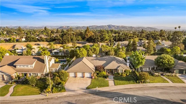Nestled in a serene cul-de-sac near Colby Trail in North Glendora, this executive home exemplifies pride of ownership. The meticulously maintained front yard sets the stage for what awaits inside. Upon entering, you are welcomed by a formal entryway that opens up to a view of the beautiful backyard. To the right, the formal living room boasts large windows with stunning views of the foothills, making it a perfect spot for relaxation by the cozy fireplace. Adjacent to the living room is a formal dining room, ideal for intimate dinners and hosting gatherings. The spacious kitchen is a chef's dream, featuring a center island, a dinette for casual breakfasts, and beautiful wood cabinets. A built-in desk area adds functionality, making it perfect for managing daily tasks. The kitchen flows seamlessly into the great room, a perfect retreat after a long day. This room offers a second fireplace, large built-in shelves and cabinets for ample storage, and a wet bar that enhances the home's entertainment potential. This property includes four large bedrooms and three bathrooms. The primary suite is a sanctuary with a spacious walk-in closet and sliding doors leading to the backyard. The en-suite bathroom features a step-in shower and a soaking tub with jets, offering a spa-like experience. One of the bedrooms is equipped with built-in shelves and a desk, making it perfect for a home office. The picturesque backyard is designed for relaxation and entertainment, with a covered patio, a tiled spa, and a tranquil fountain. This home is located within the award-winning Glendora School Dist