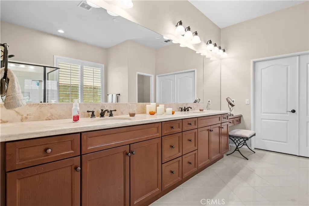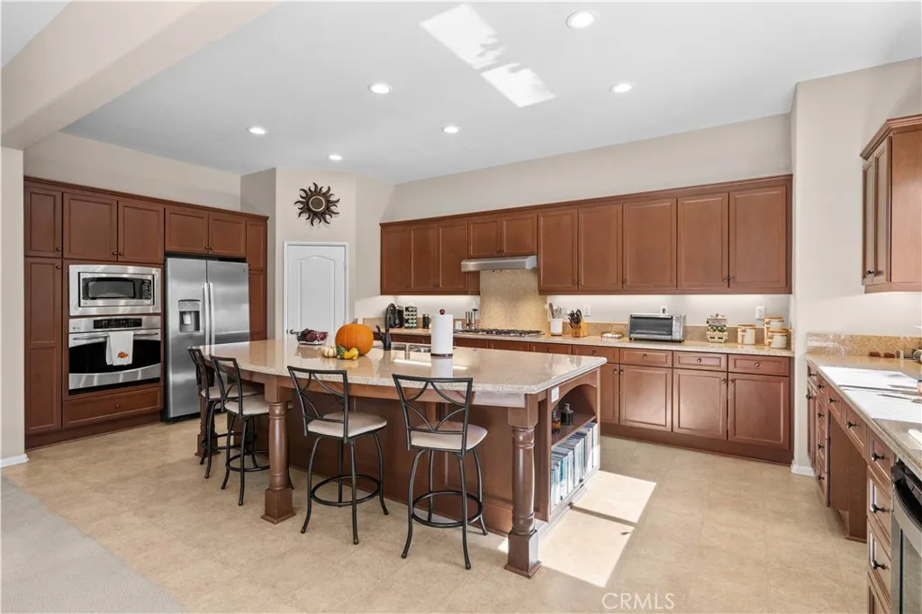 Welcome to this beautiful single-story home located in the prestigious gated community of Sycamore Hills within Sycamore Creek in Corona. This stunning property features a detached casita and fully paid-off solar, offering luxury, efficiency, and flexibility. The spacious main home includes three retreat-style bedrooms, each with its own private ensuite bathroom, plus a separate half bath for guests. This is a rare and highly desirable feature that provides comfort and privacy for family and guests. The detached casita offers an additional bedroom and full bath, making it the perfect space for an aging parent, guest suite, home office, gym, or even a creative studio. And at the heart of the home is an expansive great room featuring a gourmet kitchen with a large center island, granite countertops, stainless steel appliances, a wine refrigerator and beautiful cabinetry. And step outside to your private backyard oasis with a beautiful in-ground pool and spa featuring pebble-tech finish. Youll definitely enjoy outdoor living at its best with the California-style covered patio, a built-in gas barbecue, fire pit, raised planters, and mature trees. This space is perfect for entertaining or simply relaxing at home. Plus residents of Sycamore Creek enjoy resort-style amenities, including a large community pool and spa, pickleball courts, fitness center, clubhouse, walking and hiking trails, skate park, soccer and baseball fields. Dont miss this rare opportunity to own a one-of-a-kind home that combines luxury, comfort, and privacy in one of Coronas most sought-after neighborhoods.