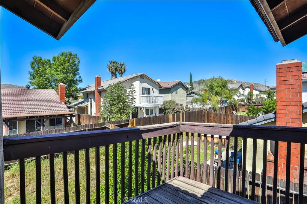 Affordable 3 bedroom 2.5 bathroom home in Moreno Valley north of the 60 freeway! Features include: Living room w/brick fireplace, upgraded dual pane windows, and wood laminate flooring, Kitchen w/tile flooring, breakfast nook, granite counters, & garden window, spacious dining room w/wood laminate flooring & wood shutters. There's also a half bathroom and separate laundry room downstairs! Upstairs features the Primary bedroom w/private balcony & remodeled primary bathroom with quartz counters, double sinks, vanity, shower/tub combo, and a walk-in closet! There's also 2 more nice size bedrooms upstairs with a full bathroom! Large back yard with covered patio! 2 car attached garage! Great location close to shopping, freeways 60/215/91, and favorite restaurants too!
