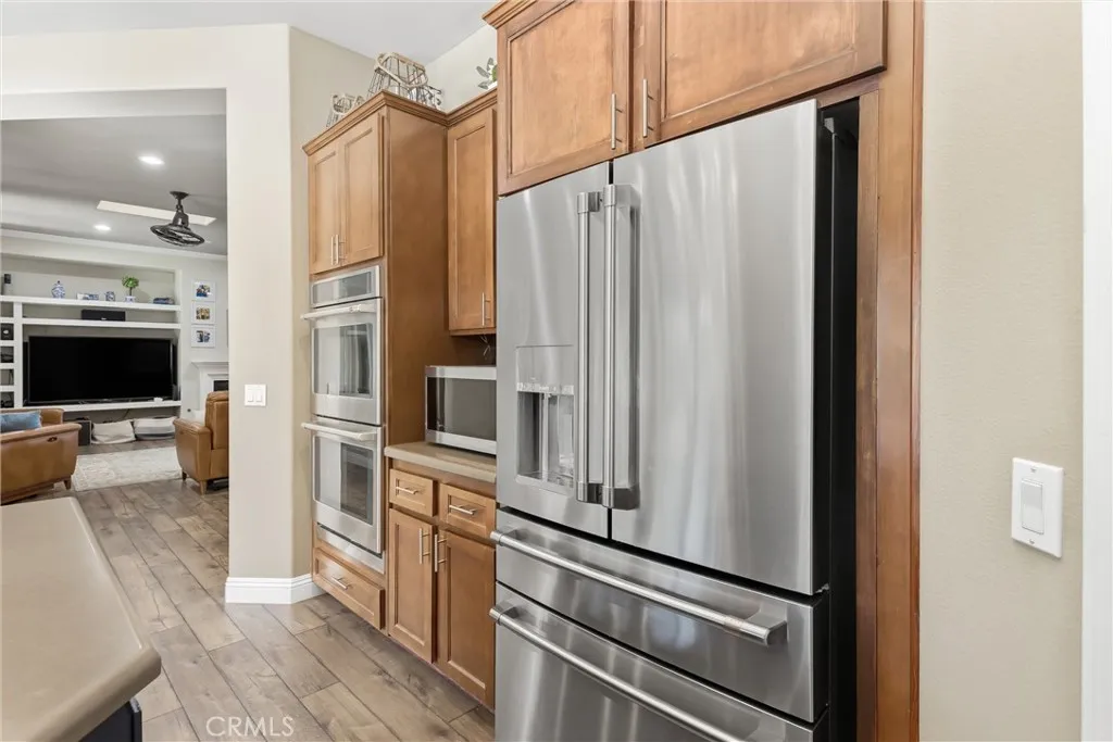 Welcome to this exceptional pool home in the gated Tournament Hills community of Beaumont, move-in ready and beautifully maintained inside and out. Thoughtfully hardscaped front and back, the home features a charming courtyard entry and a private backyard designed for entertaining. The backyard showcases a stone-covered patio ready for a built-in barbecue, an aggregate pool with a serene pond-like feel, and peaceful views backing to a gently flowing creekcreating a relaxing and private outdoor setting. Inside, the open floor plan is both inviting and functional, offering privacy with bedrooms positioned on opposite sides of the home. Two of the bedrooms features its own ensuite-style bathroom, and one includes a private door to the front courtyardideal for guests or multigenerational living. The living room is centered around a cozy fireplace, while the formal dining room impresses with open beam ceilings. A bright sunroom overlooks the backyard, providing additional living space filled with natural light. The kitchen is a standout, complete with an island, abundant cabinetry, stainless steel appliances, and new kitchen appliances