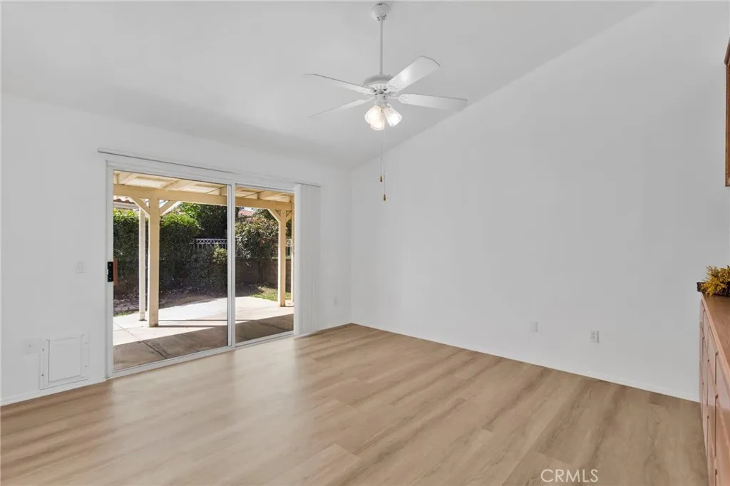 Welcome to the highly desirable 55+ community of Jess Ranch, where comfort, convenience, and an active lifestyle come together. This charming 2 bedroom, 2 bath home sits on a larger corner lot backing to a beautifully maintained grassy greenbelt, offering a peaceful setting perfect for morning walks, visiting with neighbors, or simply relaxing and enjoying the day. The home features three private patios, creating wonderful outdoor living spaces throughout the property. Enjoy a quiet morning coffee from the patio off the front bedroom, unwind on the private patio off the spacious primary suite, or entertain guests from the patio accessed through the living and dining area. Inside, the home offers fresh new paint and new flooring, creating a bright and welcoming atmosphere. The open living and dining room features built-in cabinetry, a cozy fireplace, large windows, and a sliding glass door, filling the space with natural light and enhancing the indoor-outdoor flow. The kitchen provides ample counter space, a large pantry, and a comfortable kitchen nook perfect for a small dinette or casual meals. Throughout the home youll find generous storage options, along with additional storage in the attached garage. Jess Ranch is a private, well-maintained community known for its welcoming atmosphere and variety of activities and amenities for residents. Conveniently located near shopping, dining, and everyday conveniences, this home offers the perfect blend of privacy, community, and low-maintenance living. Come experience the relaxed lifestyle Jess Ranch has to offer.