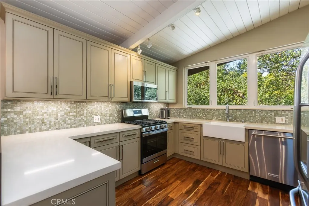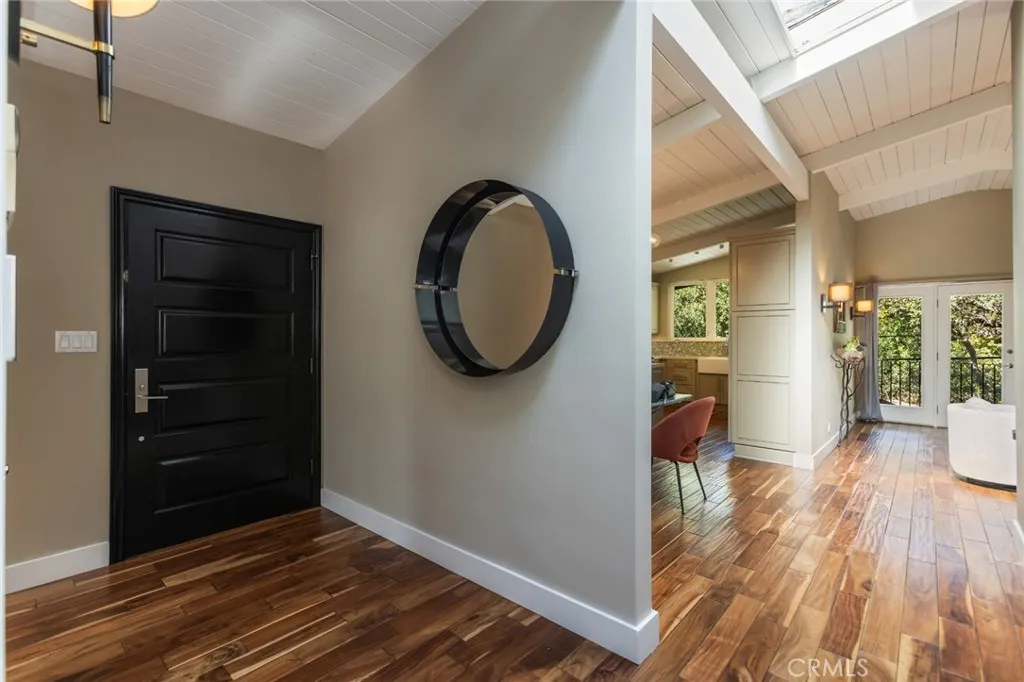 This is the home the sophisticated buyer is dreaming about, a rare opportunity to own an incredible custom mid-century modern home in the hills of Studio City and located in Carpenter Charter Elementary School. Minutes from Fryman hiking trails, the Studio City Sunday Farmer's Market and Studio City's famous Shushi Row!! This home is situated above the street and is incredibly private with tree-top views from almost every room. Enter this exquisitely maintained home through its formal entry. The formal dining room and living room have French doors that let in natural light and fresh air. The kitchen has been remodeled and has a breakfast bar, stainless steel appliances, farmhouse sink and Ceasarstone countertops and treetop views from the kitchen sink. You will never have a dull moment when cleaning up after a meal with family and friends. The living room has vaulted ceilings, a corner fireplace and access to the wraparound patio. The primary bedroom is situated on the second floor, has a walk-in closet, private bathroom, treetop views and large private patio. The two secondary bedrooms are located on the first floor and share a bathroom that has been beautifully remodeled, maintaining the aesthetic midcentury appeal of this home. Both bedrooms have French doors and open to the yard. Separate laundry room, two car garage electric driveway gate, security gate for visitors and plenty of off-street parking are just some of the features that make this home unique. First time on the market in 24 years.
