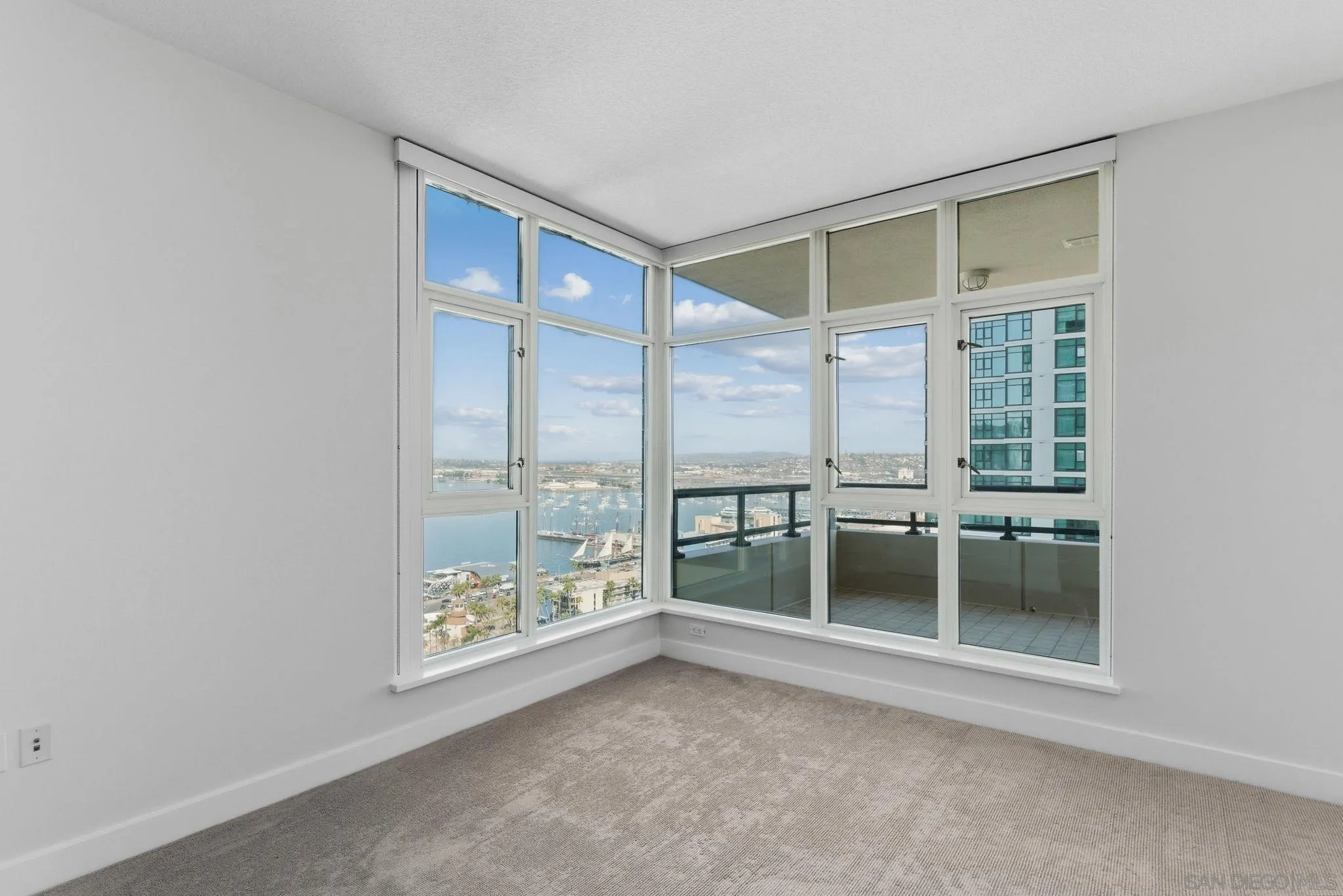 Turn-key 2 bed + den, 2 bath 23rd floor residence at The Grande South offers elevated downtown living with breathtaking panoramic views. Perched high above the city, the home captures sweeping vistas of the downtown skyline, glittering city lights, and San Diego Bay, creating a dramatic backdrop from day to night. The residence features an large open-concept living space filled with natural light, expansive windows that frame the views, and a seamless flow onto the private terrace. Residents of The Grande South enjoy full-service amenities, including security, concierge services, fitness center, pool and spa, and a prime location just steps from the waterfront, Seaport Village, the Gaslamp Quarter, dining, shopping, and entertainment. A perfect blend of convenience, sophistication, and iconic San Diego views.