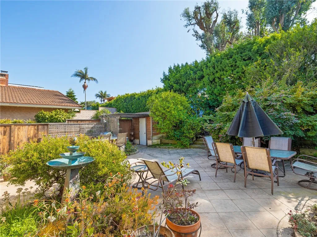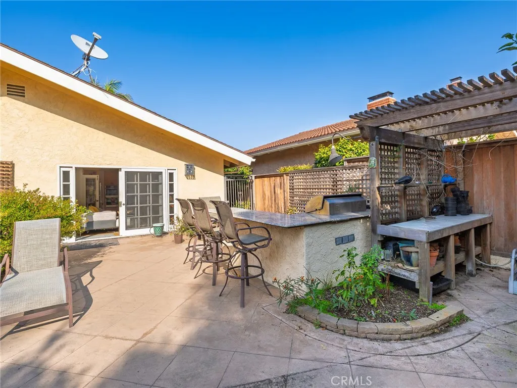 Spacious home with exceptional indoor-outdoor living! This beautifully maintained, ~2600 square foot residence offers an ideal blend of comfort and functionality throughout. The main level features an open concept kitchen with plenty of cabinet space, a large peninsula, five burner Thermador stove, double oven, and a dishwasher. The kitchen opens directly to the inviting living room which presents high ceilings, skylights, a fireplace, and a wet bar with a mini-fridge. Across the hallway from the kitchen, the large dining area connects directly to the family room which also features a fireplace, high ceilings, and built-in storage. The living and the family rooms both provide direct access to the sizeable and private backyardan entertainers dream showcasing a built-in outdoor grill with a dedicated gas line and peninsula, a garden shed, hot tub, fountain, California native plants, and mature fruit trees (two lime, one lemon, and one tangerine). The dining area also opens to its own serene garden space on the west side of the home. Back inside, all bedrooms are situated on the main floor of the home. The large primary suite includes a balcony, two closets (including a walk-in closet), and an en-suite bathroom with dual vanities and a shower. The second and third bedrooms are generously sized and each have walk-in closets, while the fourth bedroom can similarly serve as a great bedroom/office. A full bathroom with dual vanities, a shower, and a tub is conveniently positioned between the other three bedrooms. Moreover, a convenient half bathroom sits just off the entry, perfec