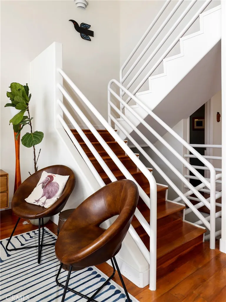 Proud to present this stunning 3-bedroom, 2.5-bath townhome-style loft condo offering 2,159 sq ft of modern coastal living in the heart of Santa Monica! This special tri-level residence impresses from the moment you enter, with soaring ceilings, ample windows, and exceptional natural light that enhances the open-concept living and dining areas on the main level. Beautiful engineered hardwood floors, recessed lighting, and a seamless indoor-outdoor flow to the main-level balcony create an inviting and functional space. The contemporary kitchen features granite countertops, a chefs island, bamboo-style cabinetry, stainless steel refrigerator, stove, and dishwasher, a farmhouse sink, modern lighting, and a granite finished backsplash. A convenient powder room is located just across the hall. The upper level is a true highlighta loft-style retreat with an expansive flex space perfect for a den, office, or workout area. This floor opens to a spacious balcony showcasing ocean views, while a second outdoor space down the hallway provides sweeping views of the Santa Monica Mountains. The lower level houses all three bedrooms along with in-unit stackable laundry. Both secondary bedrooms are generous in size with updated carpet and share a beautifully maintained full bathroom. The primary suite is an impressive sanctuary featuring updated carpet, built-in armoires, ample closet space, recessed lighting, and a gorgeous en-suite bathroom with a glass-enclosed shower, tile flooring, LED mirror, dual sinks, and a Vovo smart toilet. Additional features include two side-by-side parking spa