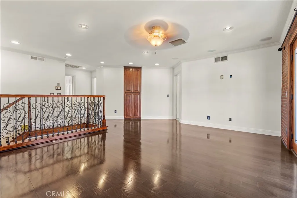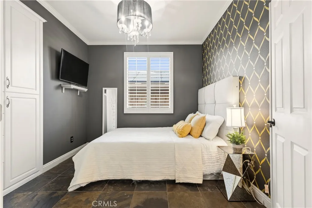 Set in one of Rancho Cucamongas most desirable neighborhoods and located within the highly acclaimed Etiwanda School District, this impeccably upgraded residence offers a rare blend of elegance, comfort, and resort-style living. Just moments from the Pacific Electric Trail, the home is ideally suited for those who value both outdoor recreation and refined indoor spaces. Upon entry, you are greeted by thoughtfully curated interiors showcasing custom natural slate flooring, detailed baseboards, and classic crown molding throughout. The homes versatile open layout features multiple living areas, including two spacious family rooms and a formal dining space enhanced with premium SPC vinyl flooring that delivers the rich look of natural wood with modern durability. At the heart of the home is a stunning chefs kitchen designed for both entertaining and daily enjoyment, complete with quartz countertops, high-end appliances, a FOTILE range hood, and effortless flow to the backyard. The adjacent family room invites relaxation with its stone-accented feature wall and cozy fireplace, creating a warm yet sophisticated atmosphere. Step outside to discover a true private retreat. The expansive backyard is thoughtfully designed for year-round enjoyment, featuring a sparkling pool and spa, covered patio, fully equipped outdoor kitchen, and a tropical-inspired Hawaiian seating areaperfect for hosting gatherings or unwinding in total privacy. The floor plan offers exceptional flexibility, including a private guest bedroom on the main level. Upstairs, a striking wrought-iron staircase leads t