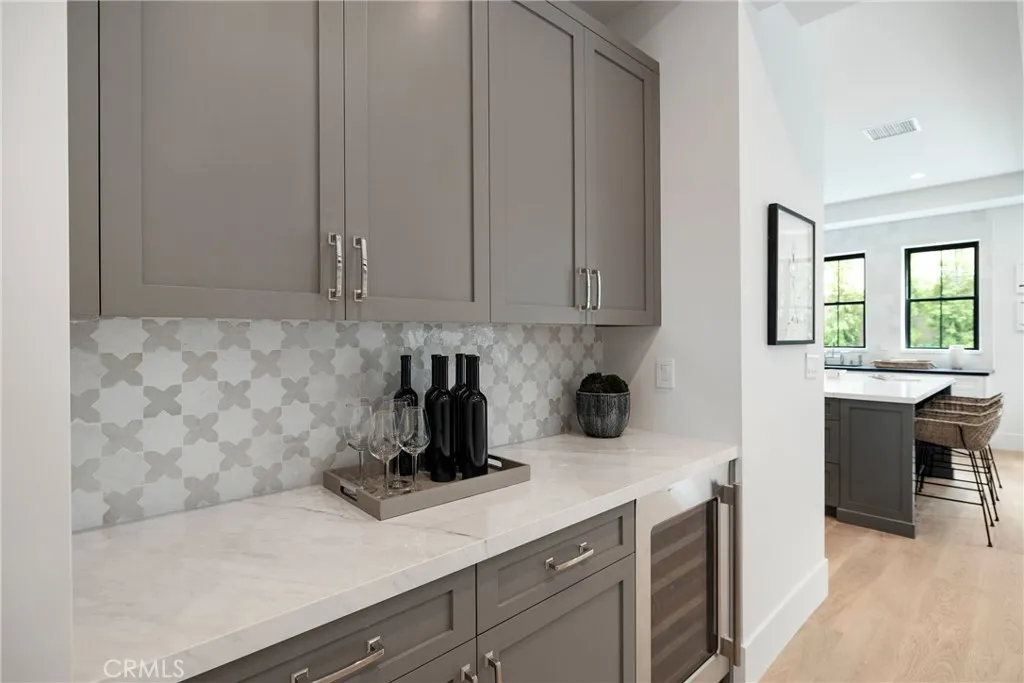 The alluring curb appeal of 1228 23rd Street presents all the elements of the quintessential family home. The highly desired Manhattan Beach address offers timeless sophistication, and the attractive beach city lifestyle. A stylish welcome draws you into almost 3,500 square feet of gorgeous, thoughtfully designed interior space. The generous foyer invites you in with gestures of luxurious hospitality. The seamless fusion of distinguished architecture, impeccable craftsmanship and fashionable fixtures and finishes are ever present. The first level hosts an ensuite bedroom that perfectly serves as a comforting stay for overnight guests or a productive home office. The living area is spacious and sundrenched with beautiful French doors that open to unite the charming patio with the landscaped front lawn. The European hardwood floors and richly inspired color palette are soothing flavor of excellence and guide you through the dining area with an adjoining built-in service bar. You are then introduced to the large-scale chefs kitchen that delivers generous portions of culinary function & appetizing style. It displays an ideal arrangement of the finest premium appliances, timeless custom cabinetry, and designer selected details. A private pass-through butlers area with walk in pantry elevates your entertaining possibilities. Continuing to harmonize with the thoughtful layout is the open breakfast area and central family room. Grand mullioned doors open to lushly unite the sunny and serene backyard with the statement fireplace adding a little balanced drama. The bright second leve