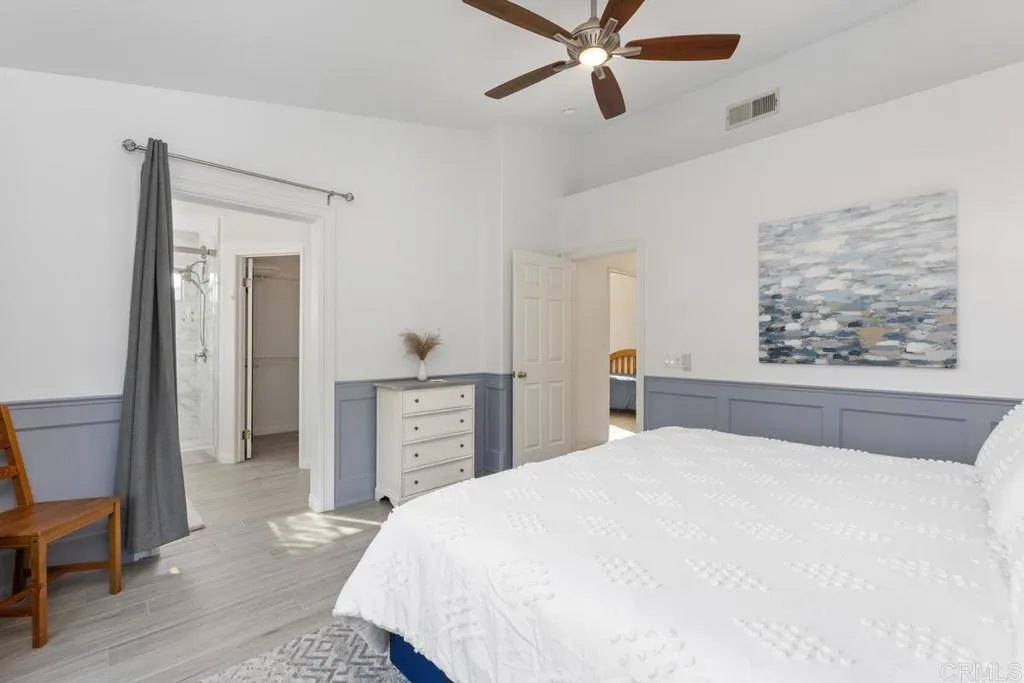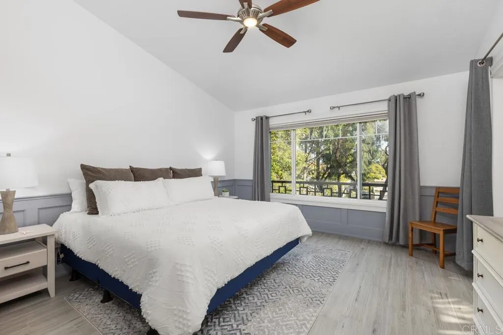 Chateau Village 1-6 month rental. Summer months of July and August rent increases to $8000 a month. Available May 1, 2026 - November 30, 2026. Fully furnished, 4 bedrooms, all upstairs. Ceiling fans in all bedroom. Living and entertaining on first floor with access to patio. All new windows and electronic privacy shades. Large flat screen TV in living room and upstairs landing. Newer stove/range, and microwave. New kitchen subway tile back splash. New front door and patio door being installed in April. All conveniences await. Community pool, tennis/pickleball court and gym for your enjoyment. Close to all in Carmel Valley/Del Mar Highlands and One Paseo. Shopping, dining, beaches, Del Mar Racetrack (10 min), Torrey Pines State Reserve, Glider port and Championship Golf Course, Amtrak (15 min) and San Diego International Airport (25 min). Del Mar Summer Concerts (10 min).