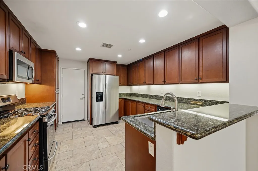 Here it is! The hard to find single story floor plan at Victoria Gardens could be yours!! This beautifully upgraded home has 2 bedrooms and an office with wall to wall built in shelves and 2 bathrooms. The living room has a beautiful rock accent wall, fireplace and Hardwood floors, hardwood and tile floors are throughout, there are granite counters, 2 car garage (with storage cabinets), and a lovely, private back patio! This home also has a refrigerator and washer and dryer included for tenant use! Living at 24/7 the Victoria Gardens condos you will have access to the resort style pool area with bbq's, the clubhouse and the gym! And you'll be walking distance from the Mall, dinner, library, theatres, park... there are many hot spots to hit and advantages to Living here, in what could be, Your New Home!! Owners are looking for credit scores 700+, income of $7000+, no pets (sorry).
