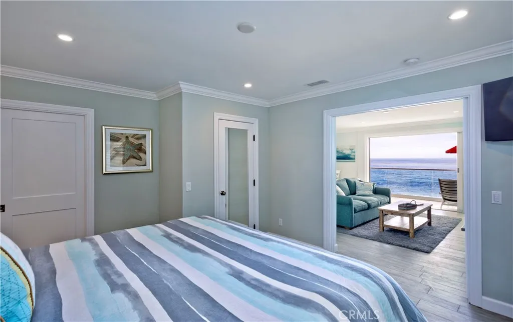 Beautiful furnished ocean front monthly or long term rental. Available starting May 30, 2026. Spacious and bright one bedroom, one bath plus office nook lower unit on Brooks Beach in Laguna. Enjoy the large balcony right over the beach with 180 degree panoramic ocean view. Watch the surfers, dolphins, and amazing sunsets. Decorated in a soothing and relaxing beach inspired style. Living room has lovely fireplace and large flat screen. Master bedroom has walk in closet and smart TV. Large master bath with dual vanities. Hi Speed wireless Internet access. Great location with walking and trolley distance to tons of restaurants, art galleries, Main Beach...we are on the Brooks Street Beach (famous Surfing Beach) with Cress Beach (great family beach) to our left. Nicely furnished with gorgeous ocean views. Bright and airy with lots of windows and mirrors for maximum ocean views. Private stairs down to the beach. One car garage parking and utilities plus high speed internet included. Access to shared EV charger. Rent by the month as a short term rental or will consider long term lease. Available starting May 30, 2026. Summer rates apply June through August for short term rentals.