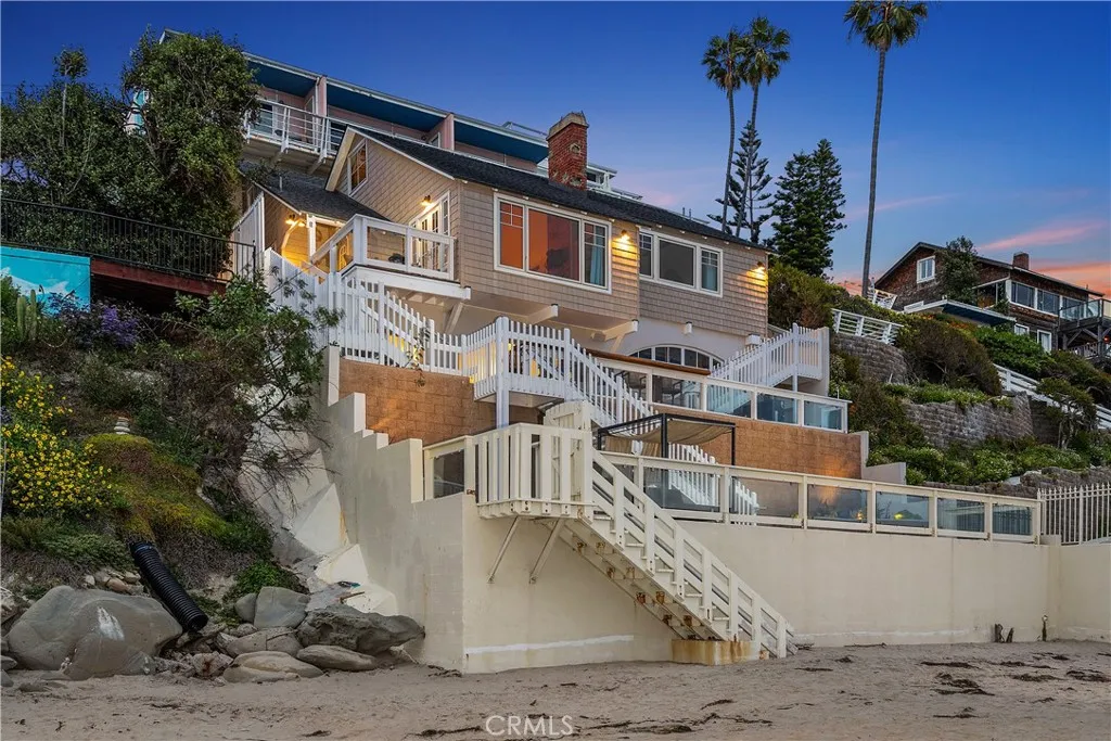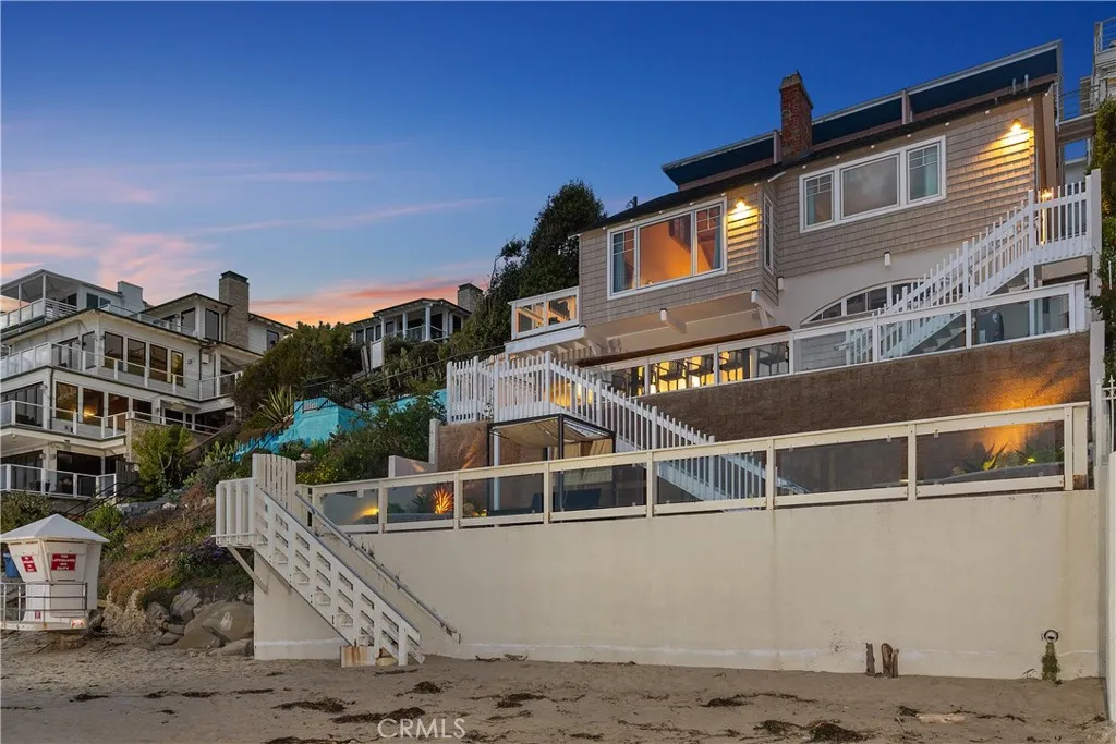 FULLY FURNISHED FOR IMMEDIATE MOVE IN!! The beach cottage in famous Laguna Beach has been meticulously restored to its original charm by a prominent designer curator. This coastal gem offers a unique blend of historical elegance and modern luxury. Situated right on the sand, the cottage boasts breathtaking ocean views and the soothing sound of waves crashing just outside your door. One of its standout features is the largest private decks on the waterfront at over 1500' including a private beach cabana room with a 20' live edge tree trunk bar table, providing ample space for outdoor relaxation, al fresco dining, and panoramic views of the sparkling ocean. The interior showcases a seamless fusion of coastal aesthetics and upscale design, with carefully curated furnishings, artisanal decor, and high-end finishes.The open beam vaulted ceilings are sure to deliver an open feeling , The cottage boast 3 bedrooms and 3 full baths and sure to deliver an experience like no other on the oceanfront, you will be fully transported to on elf the most serene settings offered to the market place.Endless possibilities with hotel style amenities ,valet service, pool / spa and turndown service all can be an option if needed.Sits on on elf Lagunas best surf beaches.Walks on the beach all the way to main beach Sunsets are breathtaking glimmering and setting behind Catalina and the Pacific views are forever!Walk to the shops, fine dining and art galleries This beach cottage is not just a home but a sanctuary where you can unwind, bask in the beauty of the ocean, and experience the quintessential