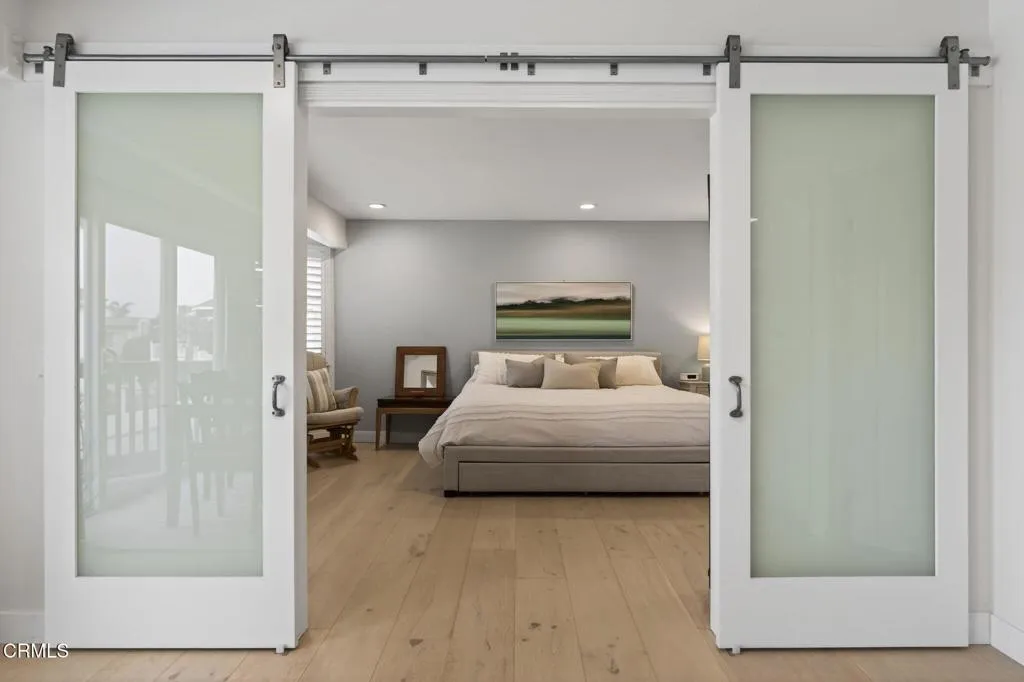 Beach is this way! This beautifully updated Mandalay Beach home offers effortless coastal living in a boutique complex of only 10 residences. As a desirable end-unit condo, it's ideal as a full-time coastal retreat, a weekend escape, or a low-maintenance second home, just steps from the sand! With a spacious 1,500 square feet, the light-filled, open floor plan features two private primary suites - one on each level - perfect for hosting guests, multi-gen living, or work-from-home flexibility. The upstairs living area is inviting with vaulted ceilings, custom plantation shutters, a newer gorgeous fireplace heating unit, and two private balconies to enjoy the ocean air. The updated kitchen showcases custom cabinetry, stainless steel appliances, granite countertops, recessed lighting, and heated floors. A generous dining area provides flexibility for everyday living or entertaining while a built-in office nook adds practical functionality. Both primary suites feature beautifully remodeled bathrooms. The upstairs suite includes triple closets, wide custom barn doors which allow the space to function as a secondary living area if desired, an oversized soaking tub, and a sleek European-style shower door. The downstairs suite features two large closets, custom tile shower with rock inlay, and convenient access to the laundry area and garage. Additional highlights include newer windows, a two-car garage with abundant storage and workbench, and an exterior hot shower - a true coastal luxury after a day at the beach! Low HOA dues and easy lock-and-leave convenience complete the packa