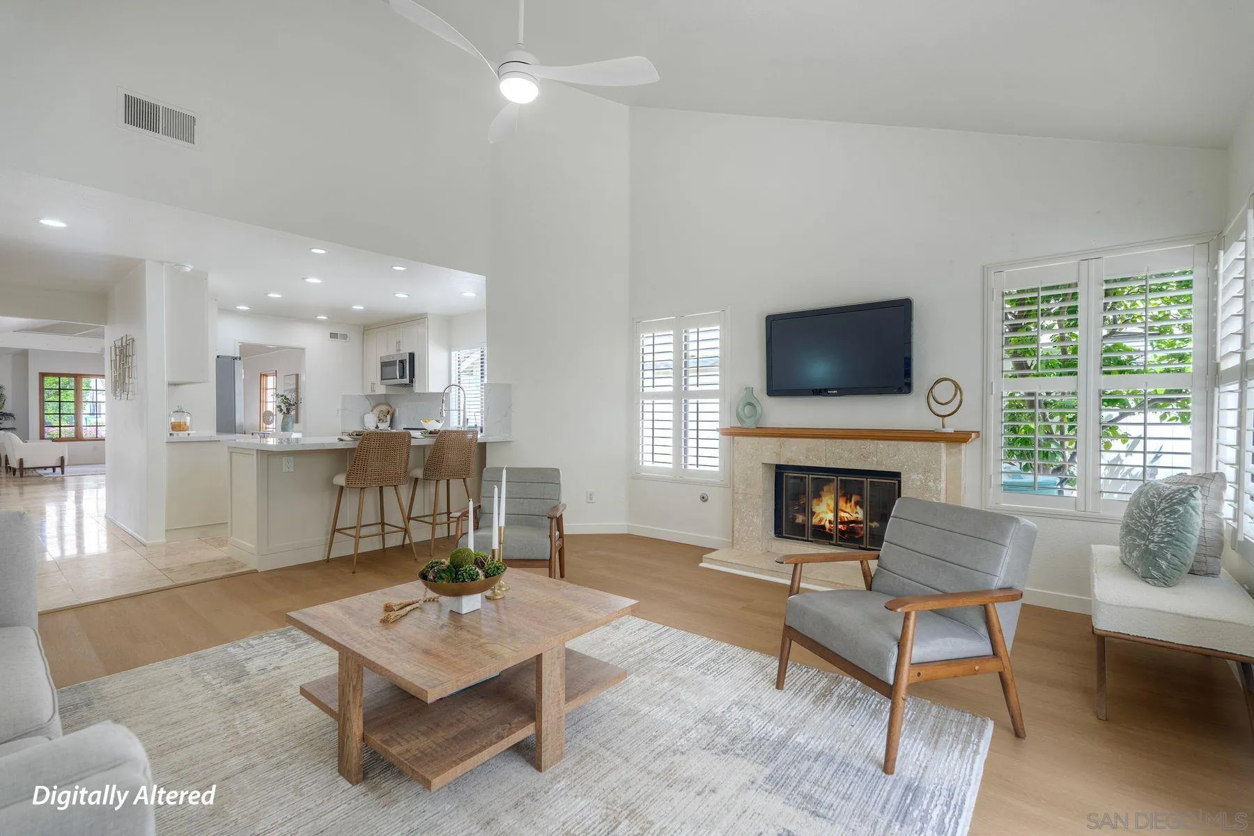 Welcome home to this beautifully updated single-level gem, ideally situated on a quiet cul-de-sac in the heart of Rancho Bernardo. From the moment you step inside, you’re greeted with an abundance of natural light, soaring vaulted ceilings, and elegant travertine flooring that create a bright and inviting atmosphere throughout. The thoughtfully recently remodeled kitchen is the heart of the home, featuring stunning quartz countertops and backsplash, stainless steel appliances, a large deep sink, and ample storage—perfect for both everyday living and entertaining. Just beyond, a cozy custom fireplace adds warmth and charm to the attached family room. This spacious four-bedroom home offers comfort and functionality, including beautifully remodeled bathrooms with custom tile and granite finishes. Additional highlights include brand new carpeting, a whole house fan, air conditioning, plantation shutters, generous attic space, a newerR water heater, and extra storage in the garage—ensuring both convenience and peace of mind. Step outside to your own private patio retreat, complete with a patio cover—an ideal setting for relaxing, dining, or enjoying San Diego’s year-round sunshine. With its prime location, thoughtful upgrades, and welcoming feel, this Rancho Bernardo home is ready to be enjoyed.