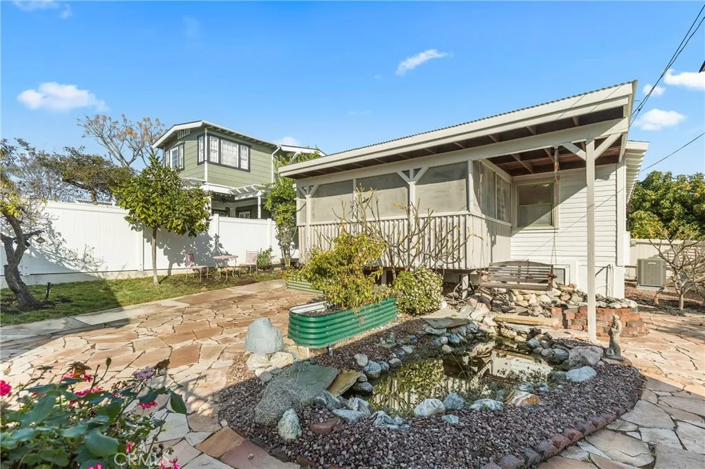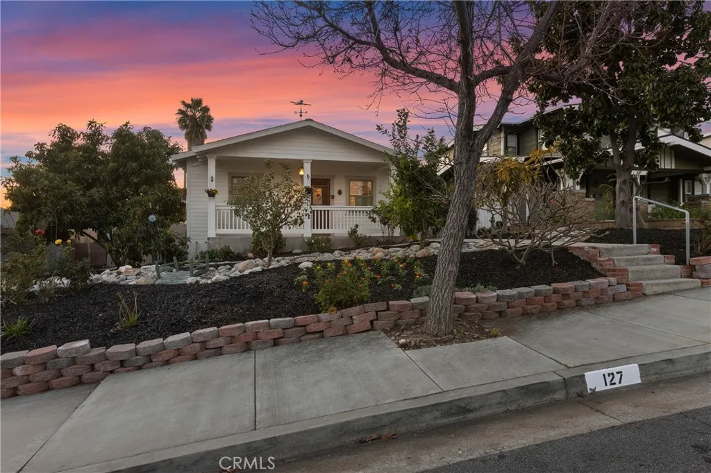 PRIME LOCATION HISTORIC HOME WITH MODERN UPGRADES! Save on property taxes with this registered historical landmark under the Mills Act, reduce energy costs with solar panels, and explore potential income opportunities with the ability to construct multiple ADUs. Situated on a large 7,000 sq ft lot with rear vehicular access, ideal for RV or boat parking. Known as the Glen Dunkle House #54, this 1923 home is located in the Redwood Avenue Historic Area and registered with the Brea Historical Society. The 2-bedroom residence blends preserved architectural details with practical updates and offers flexibility for future expansion or additional income. Interior features include a tiled fireplace, new laminate flooring, fresh paint, stained glass windows, cedar-lined closets, ceiling fans, and abundant natural light. The bathroom includes a clawfoot tub, walk-in shower, and classic tile finishes. The kitchen offers butcher block countertops and island, ample cabinetry, and connects to an indoor laundry and pantry. A covered outdoor room provides approximately 200 sq ft of additional usable space. The backyard includes fruit trees, a pond, stone walkways, storage sheds, and access to a detached two-car garage with potential for conversion to a studio, office, expanded garage, or ADUs. Additional upgrades include new AC and ducting, rear gated access, and solar panels. Conveniently located near Downtown Brea, Brea Mall, shopping, dining, civic amenities, and top-rated schools.
