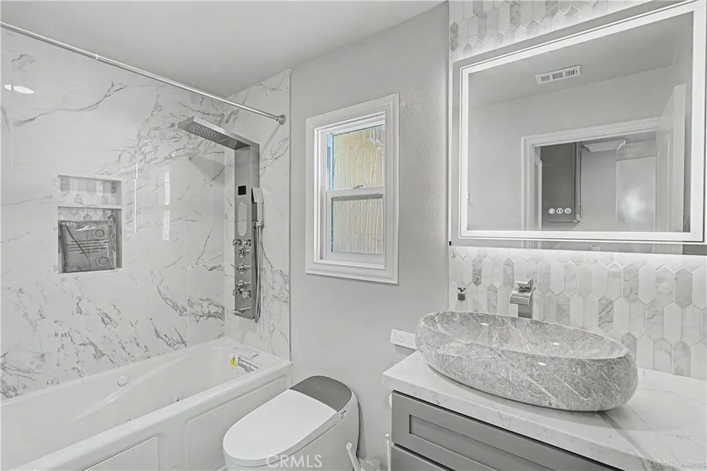 Experience living on this over 10,000 sq ft lot, great cul-de-sac home where every detail has been thoughtfully updated. The interior features elegant porcelain flooring throughout the majority of the main level. Upon entry, you are greeted by a spacious formal living and dining area accented by gorgeous crystal-inspired ceiling fans. The heart of the home is a chefs dream kitchen featuring a massive granite island with a sophisticated waterfall edge, soft-close cabinetry, a farmhouse sink, and premium stainless steel appliances. The kitchen flows into a bright family room with recess lighting anchored by a cozy fireplace and a 75-inch swivel television which is negotiable with the sale. The main floor includes a convenient bedroom and a full guest bathroom upgraded with a jetted tub and a premium bidet. Ascend the newly installed glass-accented staircase to find four additional bedrooms and a massive loft. While the loft is recorded as a sixth bedroom, its open layout makes it an ideal space for a home office or game room. The primary suite offers a private retreat with a walk-in closet and bathroom featuring a separate tub and shower. The exterior is a private oasis with professional landscaping, low-maintenance turf, vinyl fencing (with lightening,) and a refreshing saltwater pool and spa with lighting. Sports enthusiasts will appreciate the private basketball court with a protective safety net. With plantation shutters throughout, Solar, and ample space for entertaining, this home is a rare opportunity.