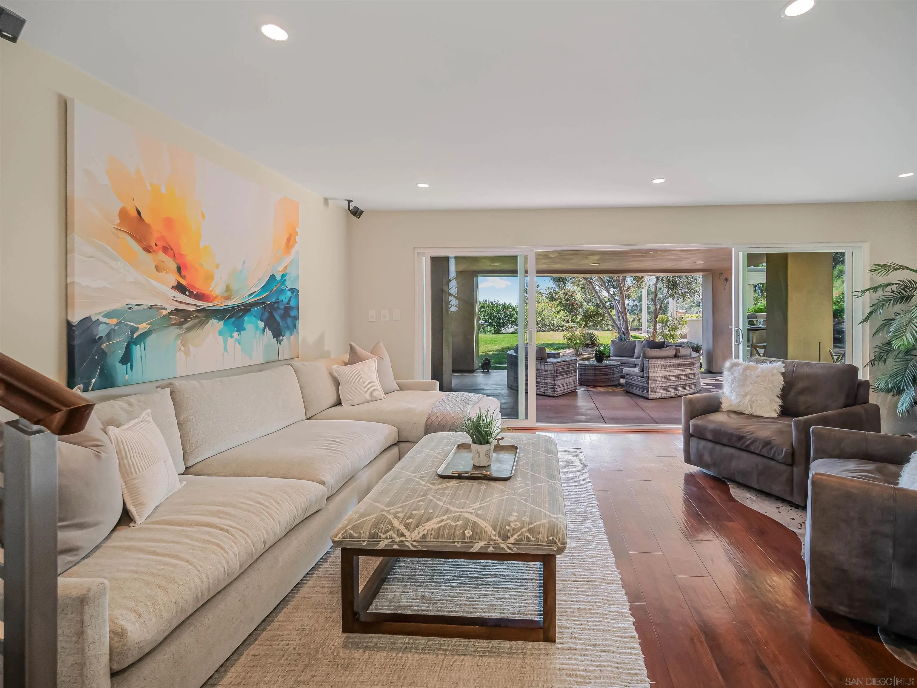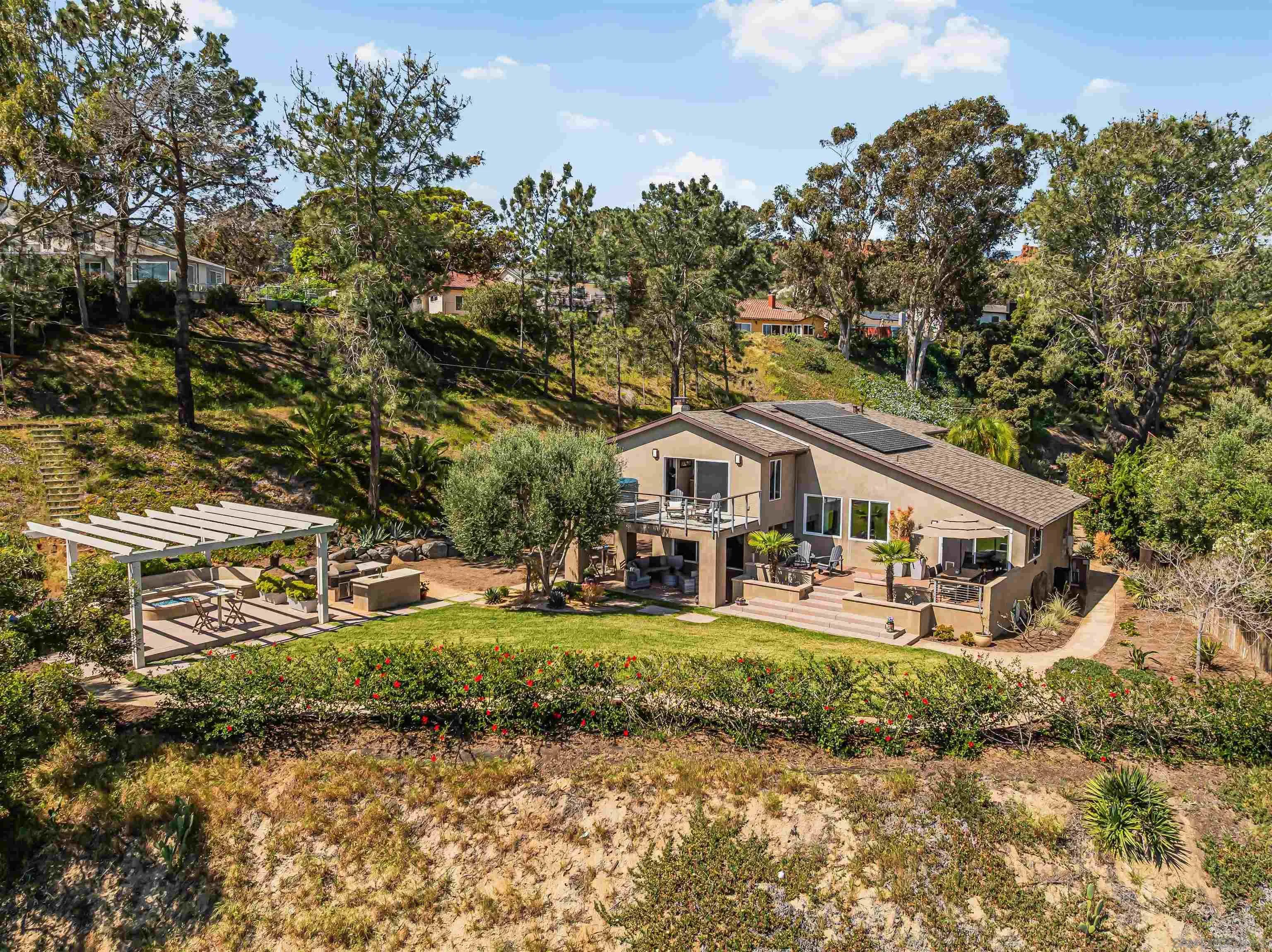 At the end of a quiet cul-de-sac in the Del Mar hills, this reimagined coastal retreat offers a rare combination of privacy, scale, and possibility. Set on one of the largest residential lots in the neighborhood and elevated above the streets below, the home is surrounded by treetops and soft eastern light, creating a sense of calm that is increasingly hard to find this close to the coast. Thoughtfully transformed with over $400,000 in high-quality upgrades, additions, and renovations, the home lives with ease. The layout is open and modern, centered around a chef’s kitchen and designed for connection, comfort, and flexibility. Spaces adapt naturally to daily living, entertaining, or working from home. A separate office with its own entrance offers an ideal guest suite, studio, or optional fifth bedroom. Outside, the property lives like a private park, with lush landscaping, outdoor kitchen, fire pit, covered lounge, and multiple gathering areas that make everyday living feel like a getaway. The usable grounds invite imagination: expand the home, create a pool retreat, plant a vineyard or citrus grove, or bring to life the previously approved ADU vision with a three-car garage. Minutes from Torrey Pines State Beach and Park, the golf course, Del Mar Village, and the Racetrack, with easy access north and south, this is a quiet sanctuary at the center of it all—close to some of the state’s top-ranked public and private schools. Opportunities like this are few and far between in Del Mar—this is where space, privacy, and possibility finally come together.