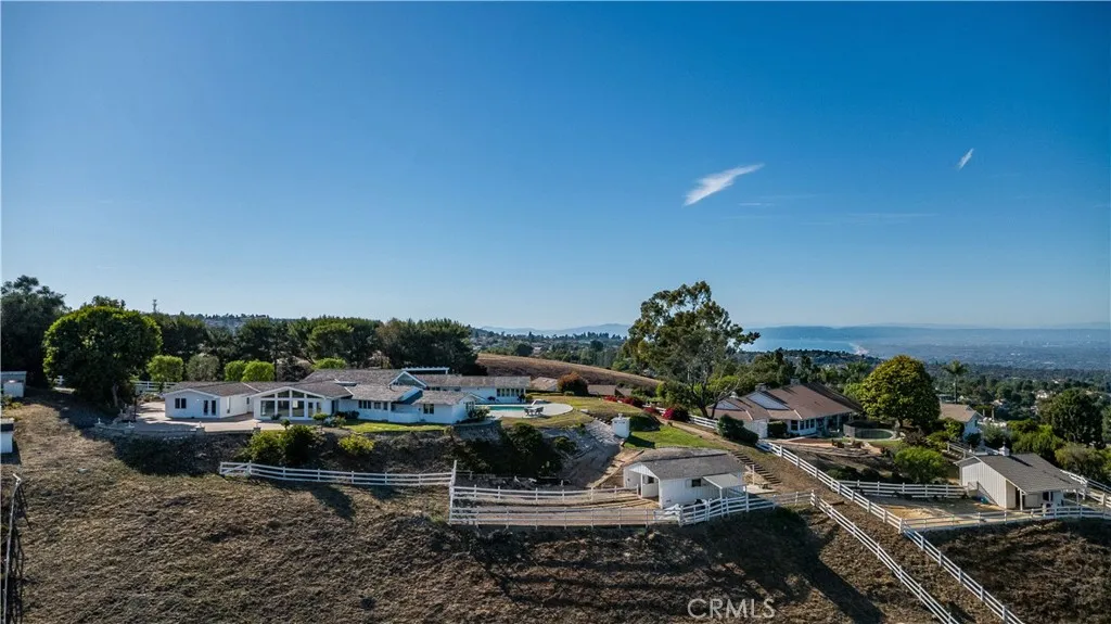 A Rare Cliff May-Designed Equestrian Estate with Unrivaled Views in Rolling Hills. Welcome to your private hilltop retreat, where classic California ranch architecture meets resort-style living. This spectacular 5-bedroom, 5.5-bath estate designed by iconic architect Cliff May is nestled behind the 24/7 guard-gated community of Rolling Hills. Perfectly positioned on one of the best streets in the city, this property offers sweeping, unobstructed views of the Queens Necklace, Downtown Los Angeles, and the glittering city lights below. Thoughtfully crafted to capture its breathtaking surroundings, nearly every room in the home frames a panoramic view. Floor-to-ceiling windows fill the formal living and dining rooms with natural light, while marble floors and vaulted ceilings add an air of quiet elegance. The gourmet kitchen opens to an inviting family room, ideal for casual gatherings and seamless indoor-outdoor living. Outside, a sparkling pool and built-in BBQ anchor the spacious entertaining patioan ideal setting for sunset soires or weekend relaxation. A detached guest apartment with kitchenette offers comfort and privacy for visitors or multigenerational living. For the equestrian enthusiast, the estate features a barn, corral, and wash area along with the potential to convert the barn to an ADU (buyer to verify with city). With approximately 2 flat acres, the property offers space for a pickleball court, vineyard, orchard, or expanded pasturebringing endless possibilities to life. Originally selected by the former president of Southern California Edison as the first hom