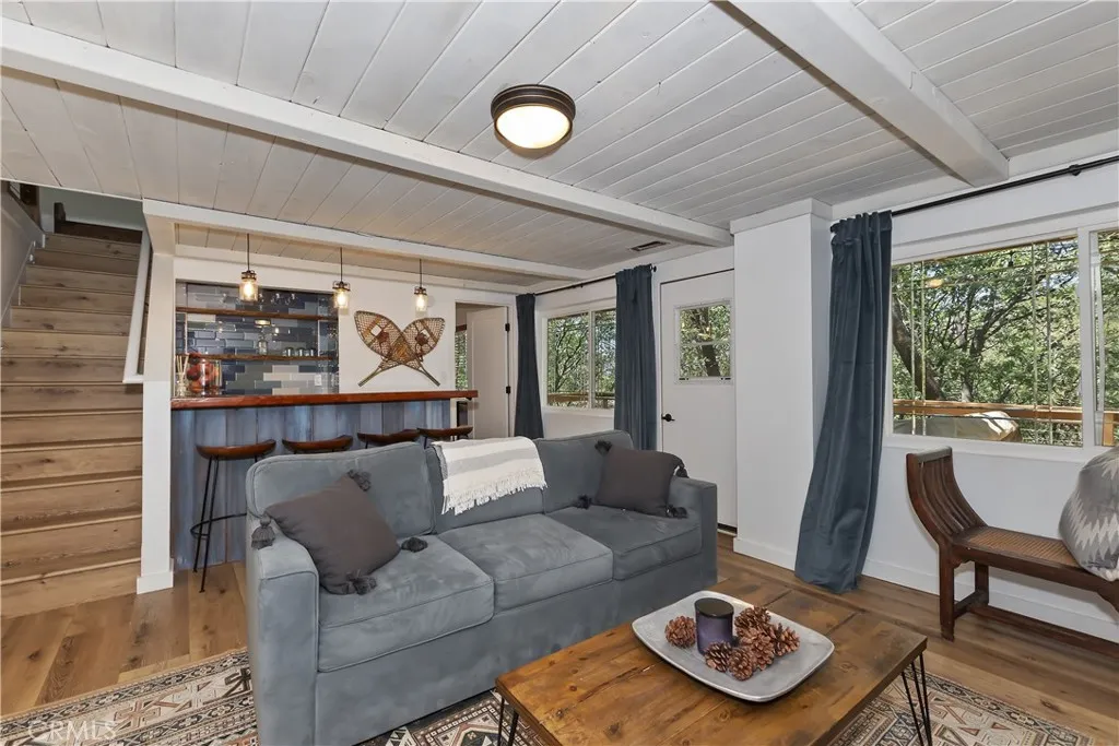 Looking for a gorgeous home that also offers some income to offset your expenses? The North Star cabin is located just minutes from Tavern Bay & is everything you have hoped for. This level-entry retreat is stylishly furnished & also a proven, successful vacation rental, offering excellent income potential for investors. The main level welcomes you with high vaulted ceilings and a dramatic wall of glass, filling the living area with natural light and showcasing peaceful forest views. This floor also includes two bedrooms, a bright kitchen, and a comfortable dining area and a full bathroom. Step outside onto the expansive deck, ideal for relaxing or entertaining among the towering oak trees. Downstairs, enjoy a spacious family room, a well appointed wet bar, and two additional bedrooms, a second full bathroom, along with another large deck for year-round enjoyment. Surrounded by mature oaks, this home offers both serenity and strong rental appeal. The motivated seller is also offering a paid rate buy down! So no reason to hesitate. Jump on this one today and make it your very own!