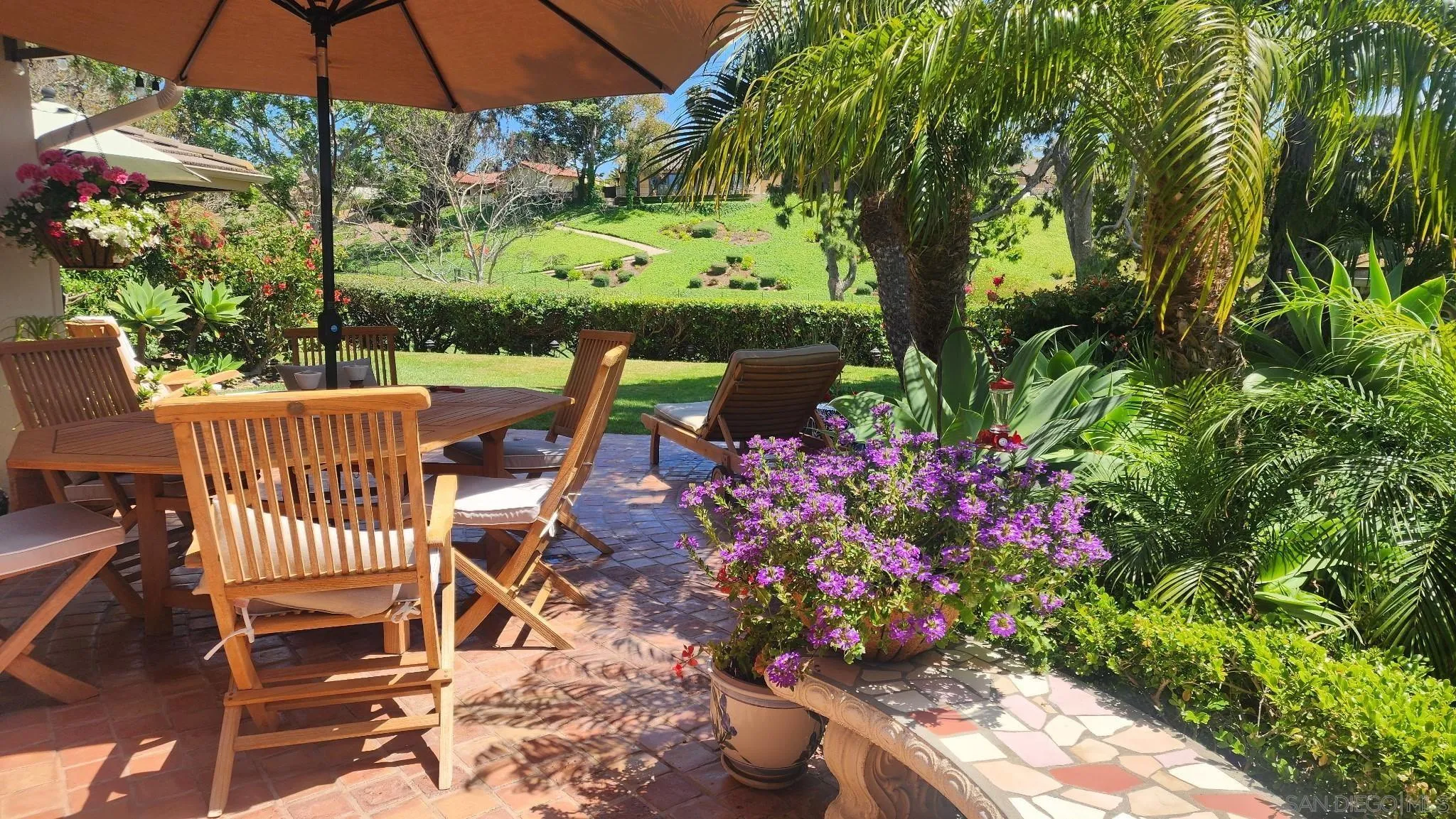 Experience the ultimate Solana Beach lifestyle in this beautifully appointed, fully furnished Country Club Villa, nestled in the heart of this vibrant coastal community. Overlooking the 17th green at Lomas Santa Fe golf course, this 2-bedroom + den, 2-bathroom villa combines luxury with tranquility, making it the perfect retreat. The wraparound tropical backyard creates a private oasis, ideal for relaxing or entertaining with lush, serene views. Inside, the villa impresses with vaulted ceilings, wood floors, and abundant natural light from multiple skylights. The upgraded kitchen is a chef's dream with Viking appliances and granite countertops, while the renovated bathrooms blend modern design with comfort. French doors open to seamless indoor-outdoor living spaces. Enjoy easy living with a 2-car garage and walkable access to nearby dining, shopping, and the iconic Fletcher Cove beach. The Del Mar Racetrack and Cedros Design District are just moments away, and convenient freeway and train access allows effortless exploration of Southern California. With the Spectrum platinum package, Showtime, and high-speed internet included in the rent, this villa offers coastal luxury with every convenience. Don't miss the chance to call this Solana Beach gem home and experience all that Southern California living has to offer.
