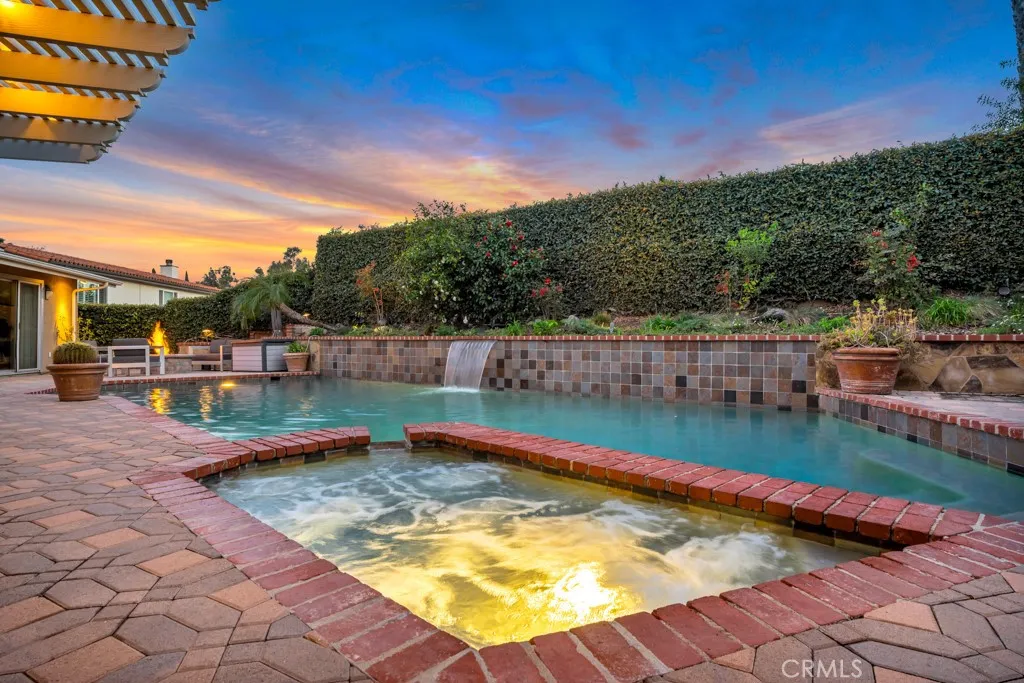 Gorgeous Sprawling Single Story Granada Hills Pool Home set against the Backdrop of Bee Canyon & O'Melveny Park. This Stunning home Exudes charm with its Stacked Stone Exterior Accents that Beautifully Compliment the Meticulously Landscaped surroundings. The Hardscape that Surrounds the Home adds to its Appeal creating Atmosphere. The Spacious home Features 5 Bedrooms and 3 1/2 Bathrooms offering Plenty of room for Comfortable Living. Inside you will find Spacious Rooms adorned with Custom Window Treatments and Light Fixtures creating a warm and Inviting Ambience throughout. The Kitchen is a Chef's Dream, featuring a Custom Nook with Desk, Large Island, Quartz Countertops, Stainless Steel Appliances which include Double-Oven, Built in Convection Oven, Paneled Dishwasher, Trash Compactor, Self-Closing Cabinet Doors, and Pots and Pan Drawers. The Family Room Boasts a Built-in Entertainment Center Stacked Stone Fireplace, Large Custom Window Bringing the Outdoors in, and a Security Door which Leads to the Backyard Retreat. The Living Room, Dining Room and Sunken Bar provide ample Space for Gathering and Socializing. The Primary Suite is a true Oasis complete with a Custom Bathroom and a Spacious Walk-in Closet. The Luxurious Primary Bathroom features Granite Counters, Tile Flooring and Tub Surround, a Tile Shower with two Shower heads, Rain Shower Head and Bench, Vanity with Dual Sinks and Mirrors, and Exquisite Finishes Throughout. The Primary Bedrooms custom double Sliding Doors Open to the Backyard Retreat, allowing for Seamless indoor-outdoor Activities. This Homes Backyar