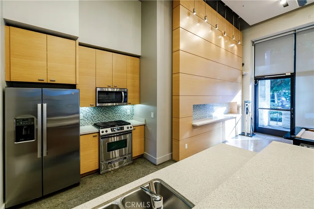 Discover the ultimate expression of coastal luxury and vibrant downtown living, where modern design meets the heartbeat of the city. This ultra modern space is far more than a home, it is a lifestyle destination. With an impressive 1,050 sq ft of bold open concept living, this is the largest one bedroom layout in the building and a rare opportunity to live expansively in one of Long Beachs most desirable urban communities. Vaulted ceilings enhance the airy atmosphere while natural light illuminates every corner. The massive living and dining area with a nook offers flexibility to design the perfect entertainment space, home office, or relaxation zone. Rich hardwood and designer tile flooring add warmth and style, while the quartz gourmet kitchen features stainless steel appliances including a brand new dishwasher. Additional conveniences include AC, in-unit laundry, a modern tankless water heater, and a large hallway storage closet. The spacious bedroom offers excellent storage with double closets. Enjoy Promenade facing views from your private balcony, where you can start your morning with sunshine and unwind in the evening as city lights shimmer. Two gated underground parking spaces plus a significant deeded storage cage provide convenience rarely found in urban living. Located in the exclusive beautifully maintained building, the amenities include guest parking, EV charging, a bike room, a stylish club lounge with a kitchen, television, pool table and shuffleboard, a gym with a yoga studio, and an outdoor courtyard with lounge seating and a cozy firepit. High speed inter