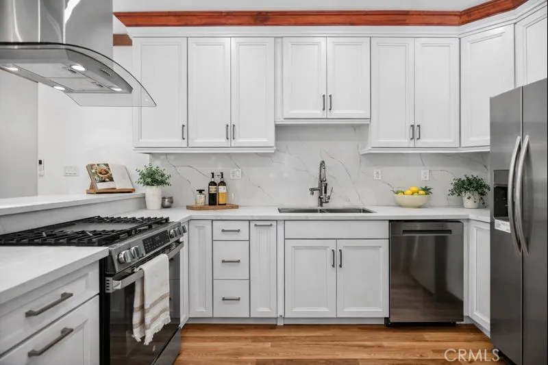 Welcome to a rare, turn-key new construction opportunity on a newly rezoned R3 lot, offering both luxury living and serious long-term upside. This high-quality ground-up rebuild features a brand-new foundation, roof, plumbing, electrical, and systems throughout. All permits, plans, and Certificate of Occupancy are available for buyer confidence. The oversized R3 lot allows for the potential to build up to three homes, making this property ideal for owner-users, multi-generational living, or future development. The main residence offers 4 bedrooms and 3.5 bathrooms with an expansive, light-filled layout. The first floor includes three bedrooms and 2.5 baths, while the second floor is dedicated to a massive primary suite retreat with a full bath and private living space. At the heart of the home is a designer gourmet kitchen featuring quartz countertops, custom lighting, stainless steel appliances, gas range, breakfast bar, slow-close cabinetry, and thoughtful storage throughout. Luxury finishes include dual-pane windows, laminate faux wood flooring, recessed lighting, smooth ceilings, A/C, copper plumbing, water-conserving fixtures, and detailed base and crown accents. Outdoor living shines here. A long front porch with epoxy flooring overlooks a landscaped yard with banana trees, while the fully fenced backyard features grass, watermelon vine, avocado, and lime trees. The long 8-car driveway leads to a detached 2-car garage, already positioned for an easy ADU conversion. Major bonus: a new 220-amp electrical panel with two separate meters, specifically designed for adding a