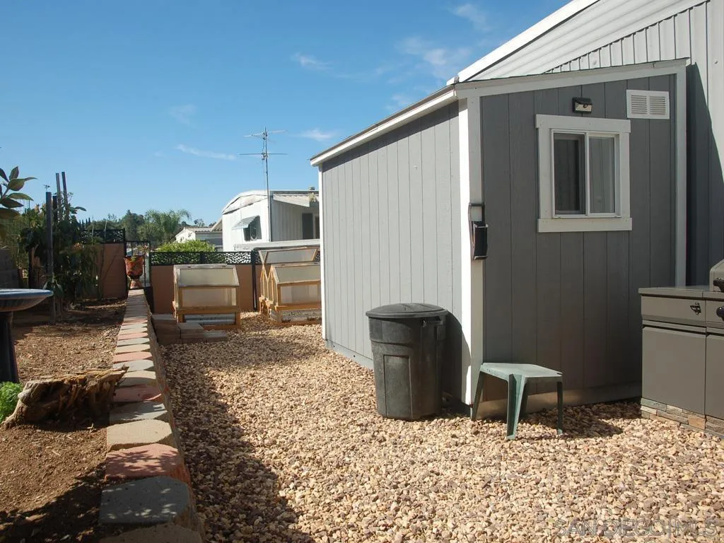 Step into a home that feels both inspiring and welcoming. This beautifully updated mobile home blends spacious living with creative touches, including bullnose wall finishes and custom matching doors, as well as pocket doors that give the space its own unique personality. The kitchen serves as the heart of the home, featuring a stylish island and distinctive plumbing fixtures that add charm and character while making everyday living and entertaining effortless. A versatile bonus room offers the perfect spot for movie nights, hobbies, a home office, or simply a peaceful place to relax. Outside, the property truly comes to life. The fully fenced yard has been lovingly enhanced with thoughtful landscaping improvements, an abundance of colorful flowers, and a newly built retaining wall that frames the outdoor space beautifully. Enjoy quiet mornings or cozy evenings gathered around the propane fire pit, while a large umbrella provides the perfect shaded retreat on warm afternoons. In addition to the car port and garden shed, the property also includes a convenient Tuff Shed for additional storage and a delightful selection of fruit trees—orange, lemon, and avocado—adding both beauty and a touch of homegrown living to your everyday routine. This home offers a wonderful balance of comfort, creativity, and outdoor enjoyment, creating a space where you can truly unwind and feel at home. The park also has no breed or weight restrictions on your loving pups.