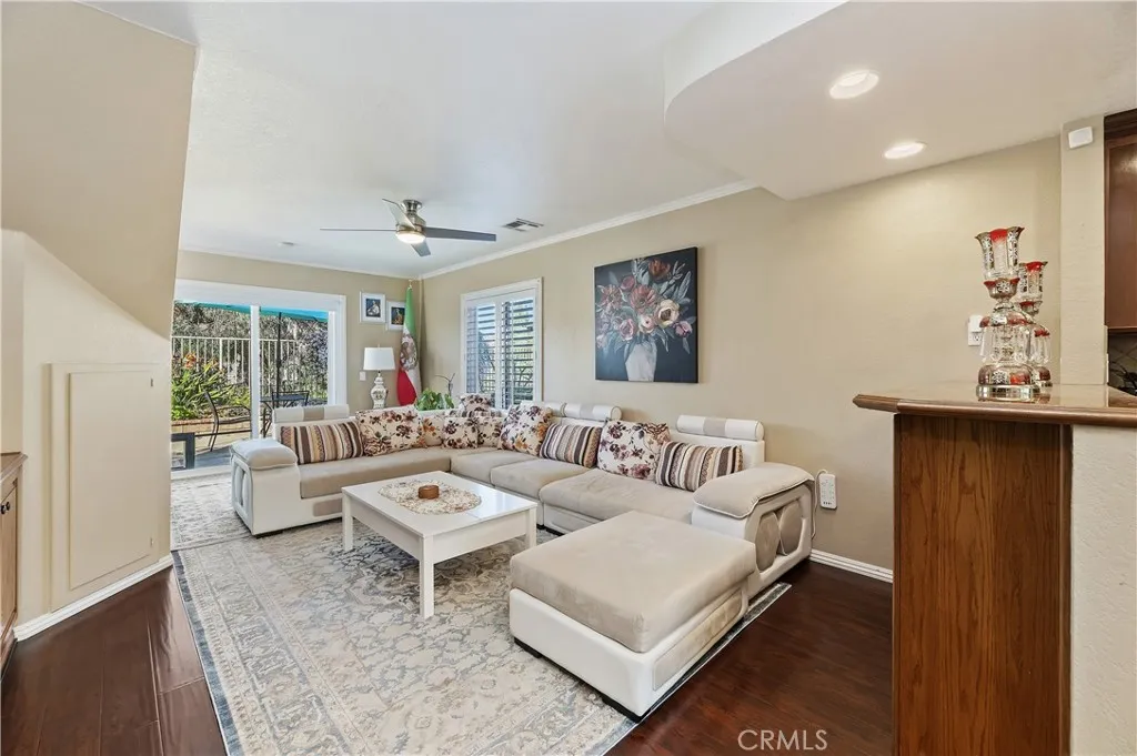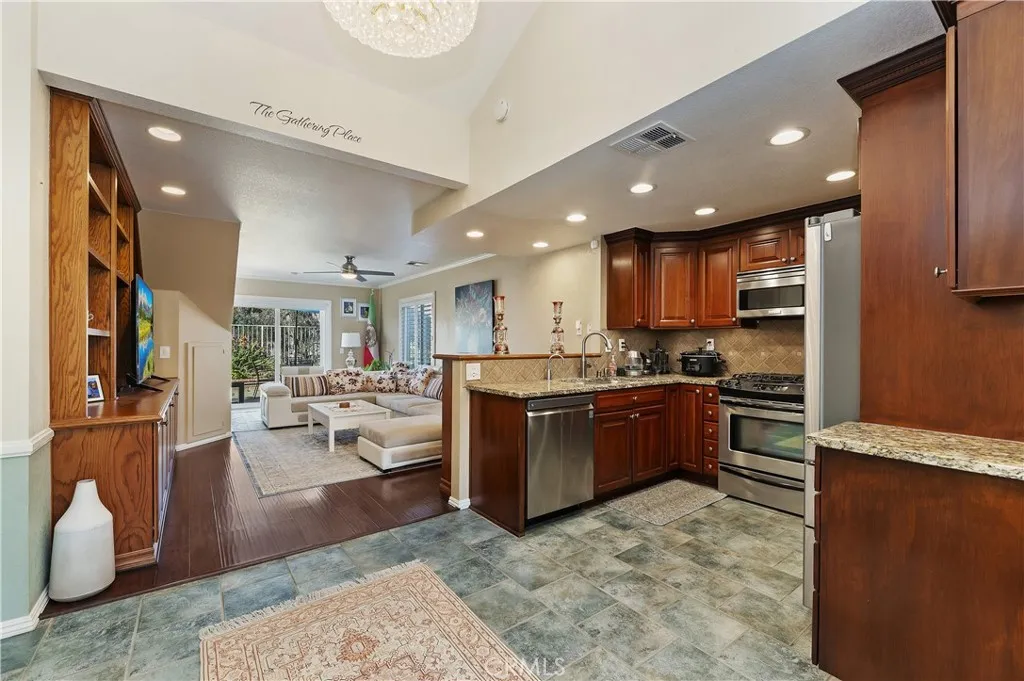 This meticulously maintained home sits on a beautiful view lot in the coveted Horsethief Canyon Ranch community. The home features 1575 square feet of open living space, featuring 4 bedrooms, 2 full bathrooms (3 of the bedrooms are on the first floor, including the Primary - and 1 bedroom is an upstairs loft. Tastefully upgraded, the kitchen has granite counters, stainless steel appliances, recessed lighting with an adjacent dining area on one side that opens to the family room with a cozy fireplace. The backyard is a tropical paradise that is elegantly landscaped with views of the surrounding mountains - all the while you can enjoy relaxation and privacy with your above ground spa and beautiful koi pond with 11 beautiful Koi in varying sizes - all located just off the primary bedroom. Another valuable feature of this home includes paid for solar, recent re-piping with Pex and tankless water heater. Horsethief Canyon Ranch is a master planned community nestled in the Cleveland National Forest, with the very best in amenities such as: Private Security, Fitness Center, 2 Community Pools/Spas, Tennis, Exercise Trail, Clubhouse, Dog Park, Ball Fields and much more - No Mello Roos and Very Low HOA for what is being offered. This home is a MUST SEE !!!!