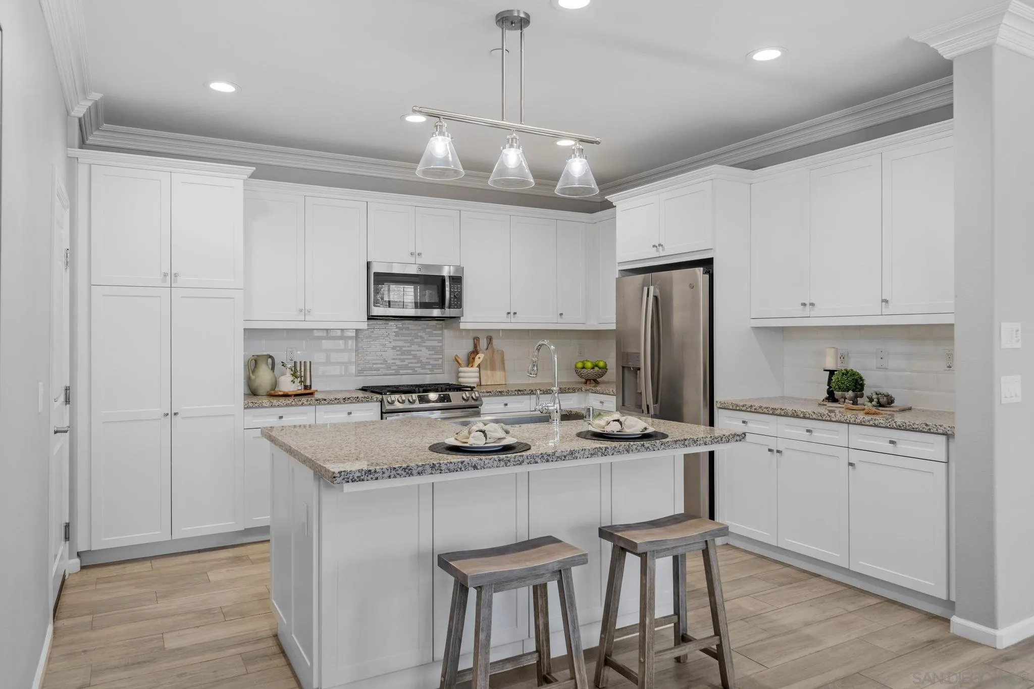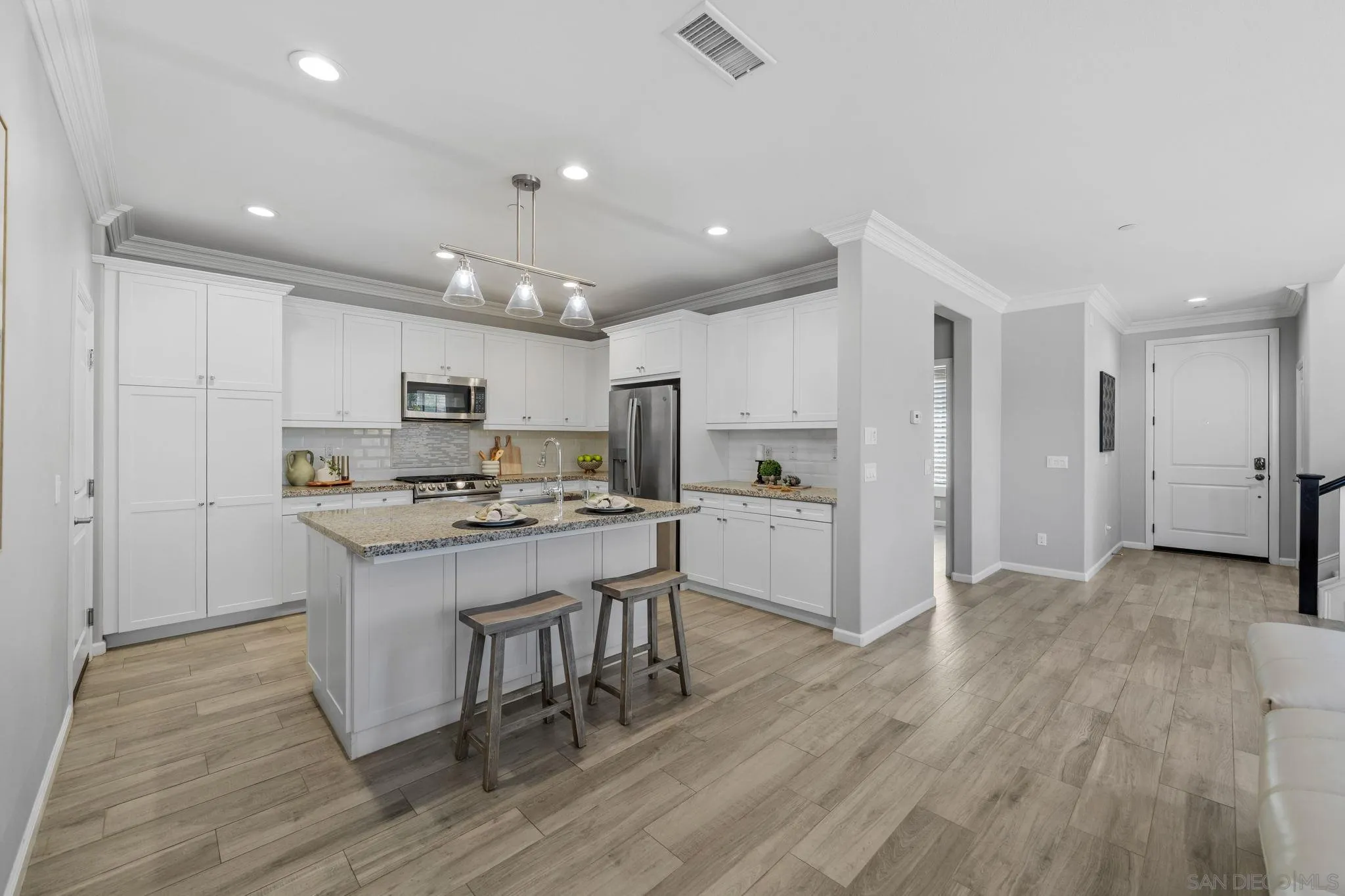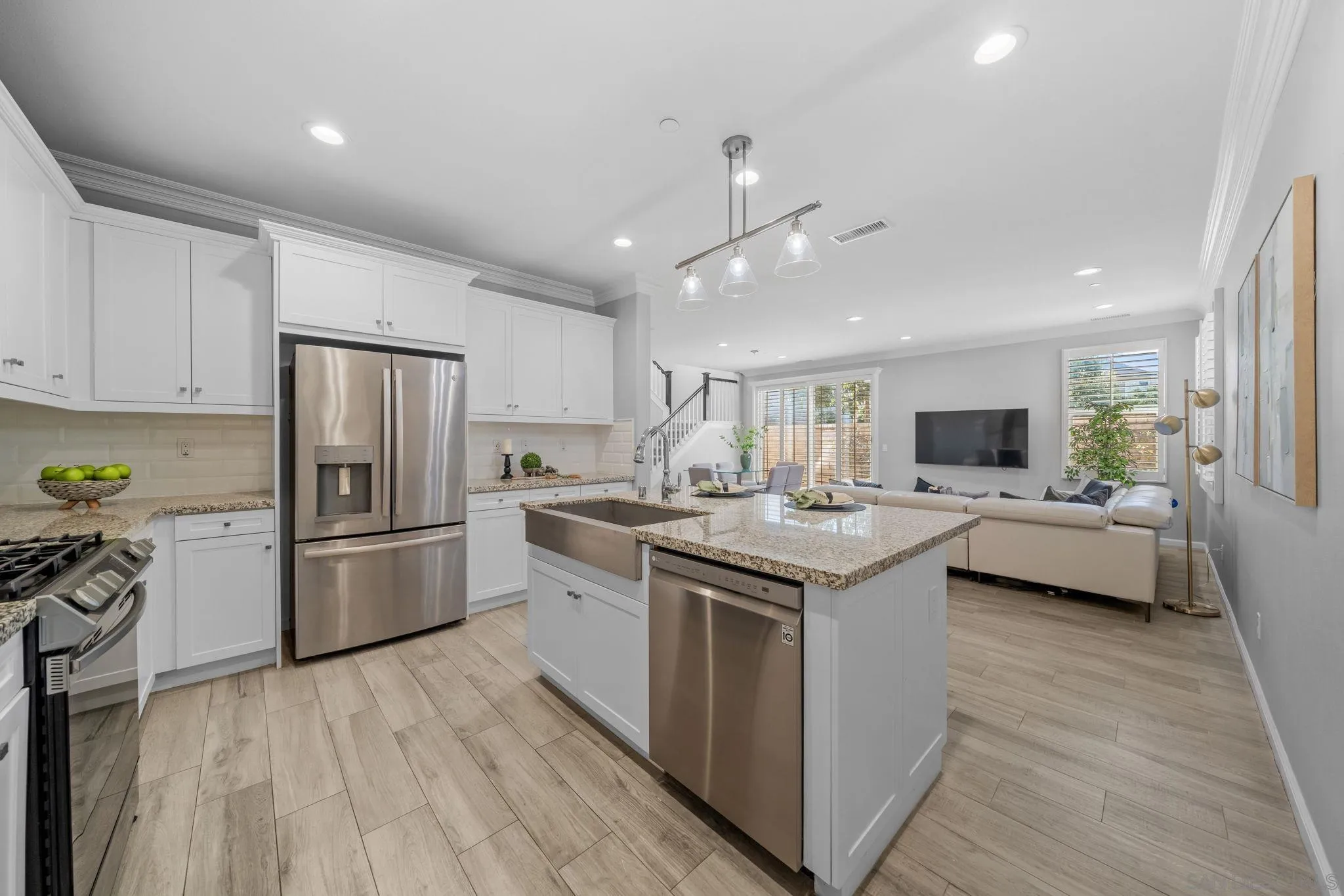 One of the best values in 92130! This beautifully maintained 4-bedroom, 3-bath home offers the perfect blend of modern luxury and coastal living just minutes from the beach Lightly lived in as a second home, the property has been barely used and meticulously maintained, presenting in pristine, like-new condition with no kids or pets over the past five years. Inside, enjoy a bright open-concept layout with recessed lighting and custom plantation shutters throughout. The upgraded kitchen features a brand-new stove, oven, and dishwasher, ideal for both daily living and entertaining. A first-floor bedroom and full bath provide flexibility for guests. Upstairs includes three additional bedrooms, highlighted by a spacious primary suite with private balcony access, dual vanities, soaking tub, walk-in shower, and walk-in closet. A second-floor laundry room with newer washer/dryer and a versatile loft space add everyday convenience. Enjoy walking distance to Top ranked schools like Canyon Crest Academy, Pacific Trail Middle School and Pacific Highlands Ranch Village Center. And short drive to One Paseo, beaches, parks, and major freeways (56, I-5, and I-15). A rare opportunity to own a truly move-in ready, like-new home in one of Carmel Valley’s most desirable communities.