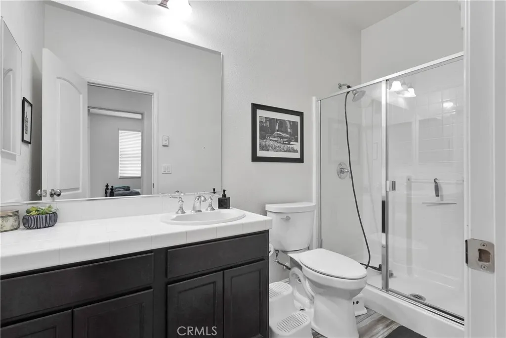 Introducing your new home with 5 spacious bedrooms, 3 full bathrooms, a 3 car garage consisting of 2,544 sqft. Built in 2012! This home has been well cared for and loved! It has been upgraded with granite counters, soft closing cabinetry, newer flooring, newer carpet! The main floor features entry room, dining room, Guest bedroom and bathroom, perfect for Multi-gen/ In-laws!! This Home has a Open Concept with the Living room and Kitchen flowing perfectly together! Upstairs there is a Primary Suite complete with large walk in closet, dual sink vanity, separate shower and garden tub!! Also Upstairs youll find 3 additional bedrooms, a full bathroom, and laundry room! Landscaping outside includes mature trees in front yard for shade and privacy, low maintenance front yard, and beautiful backyard with new patio covering with a fan, new turf, new cement, a dog run area, and a playground set if New buyer wishes to keep. There is also a Level 2 Tesla Charger in garage. The Dining room Chandelier Fixture is not included with the home purchase.