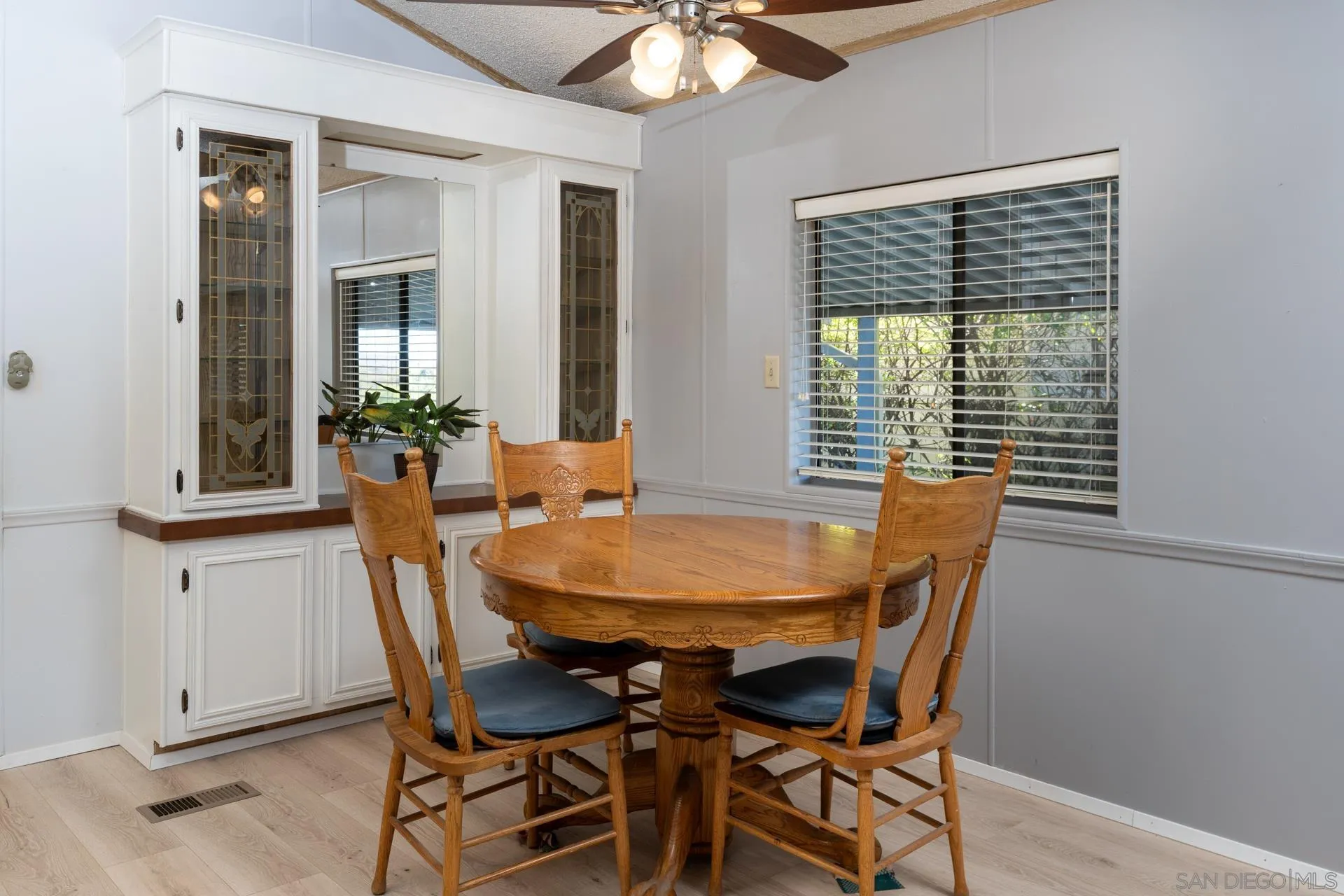 Welcome to this manufactured home in an All-Ages Park, showing evident pride of ownership. The open floor plan features upgraded flooring, new appliances, and vaulted ceilings that enhance the sense of space. Every window overlooks peaceful greenery, creating a calm and private atmosphere. Situated on a quiet street in a clean, well-kept, pet-friendly park, this home is truly move-in ready.