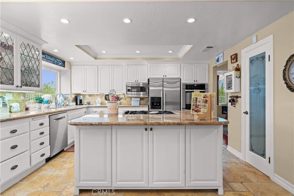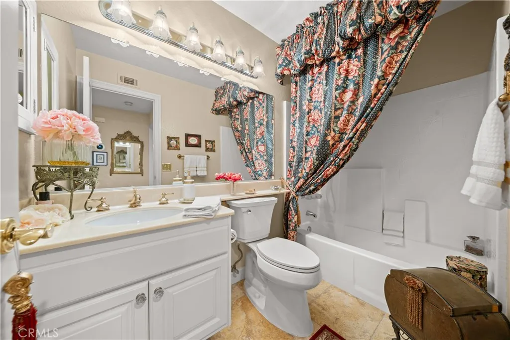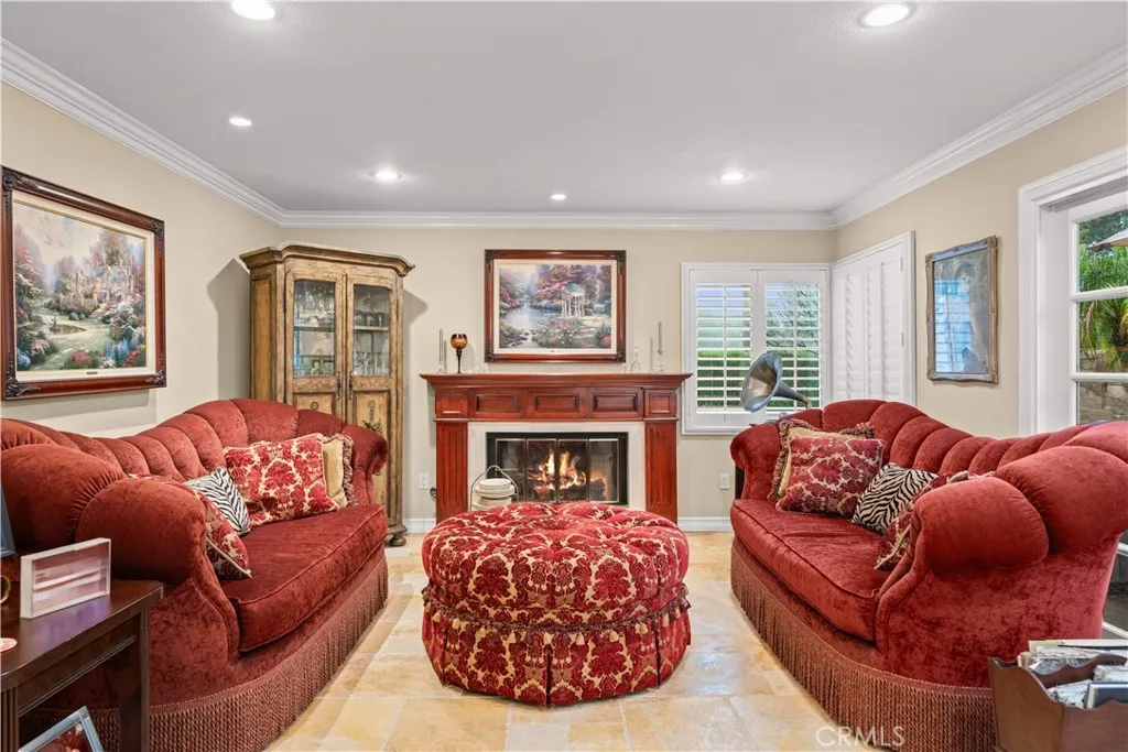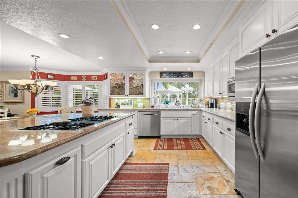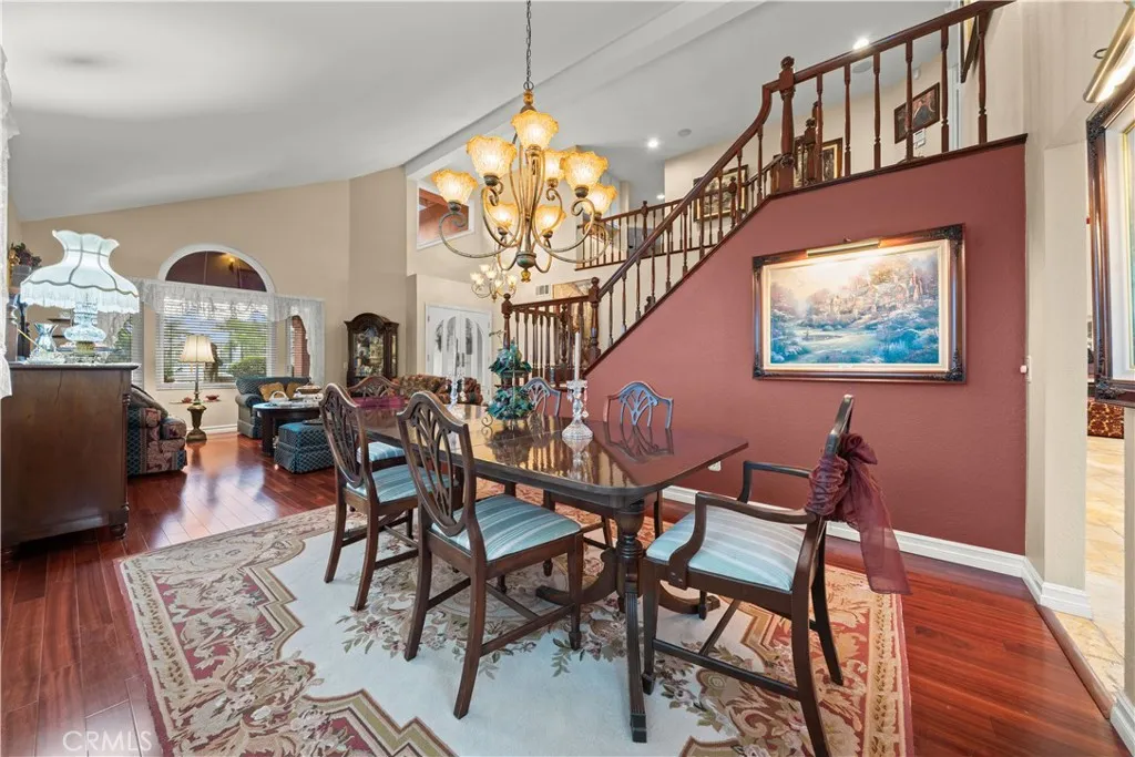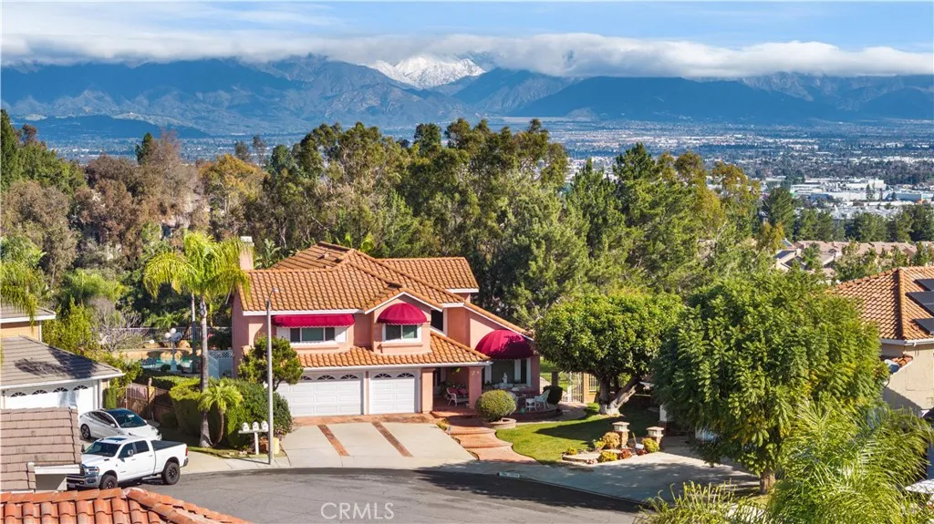 Location! View! Large lot! Located in one of Chino Hills most desirable neighborhoods, this beautifully upgraded property with 4 bedrooms, 3 bathrooms, (1 bedroom 1 bathroom downstairs) plus a bonus room upstairs, 3-car garage. With 3,017 sqft of elegant living space on a 12,500 sqft lot, open-concept layout designed for both comfort and style. Grand double-door with glass panels, soaring high ceilings and abundant natural light in living room. Remodeled kitchen featuring refaced white cabinets, granite counter tops, center island, stainless-steel appliances, including built-in microwave, double ovens. Family room with mini-bar and fireplace framed by a custom wood mantel. Large primary bedroom with retreat area. Primary bathroom with dual sinks, bathtub, separate shower.. The upstairs spacious bonus room is perfect space for a home office, media room, or potential fifth bedroom. Other features include: 3 awnings in the front windows, travertine flooring at entry, family room downstairs bedroom and bathrooms, hardwood in living room, upstairs hallway, and bonus room, recessed lights, custom chandeliers, custom window coverings, wood shutters, crown moldings, surrounding sound system, upgraded Milgard double-pane vinyl windows. Step outside to a private backyard oasis where a gazebo, BBQ island, sparkling pool & spa, professional landscaping, and beautiful mountain and city light views create the ultimate setting for entertaining or peaceful retreat. Enjoy a rare combination of scenic beauty and everyday convenience location. Excellent Chino Hills schools, walking distance t