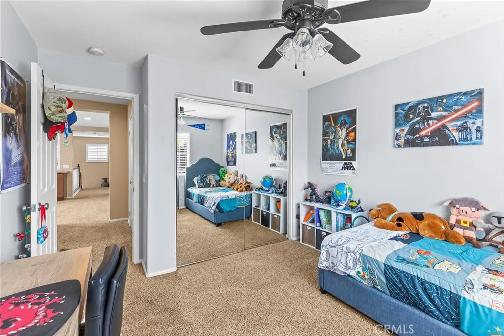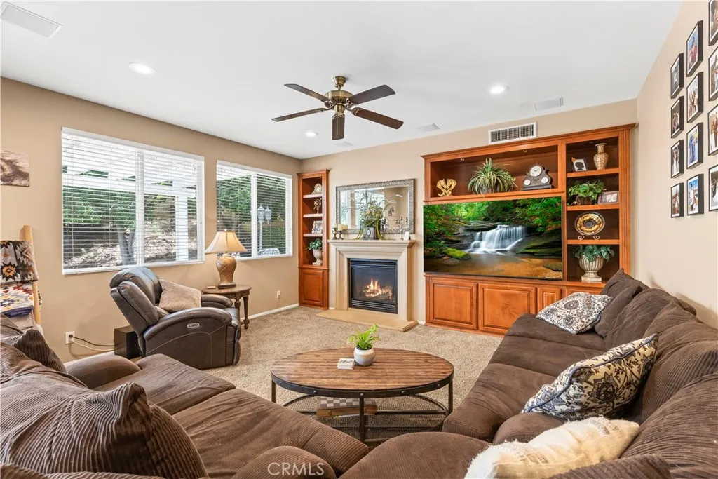 Impressive views. Expansive living. Prime location. Your search is over! Welcome to a model-perfect residence tucked away on a private cul-de-sac, offering 3,572 sq ft of living space on a generous 10,018 sq ft sized lot that offers excellent potential for an ADU and/or pool, providing flexibility for extended family or future rental income. Complete with a 3-car garage, views of the city lights, surrounding mountains, and the natural beauty of the Cleveland National Forest. Ideally located just minutes from Orange County, this home delivers the perfect balance of accessibility and tranquility, with the renowned Skyline Trail just moments away. The thoughtfully designed floorplan features 5 bedrooms, 4 bathrooms, and a spacious loft, including a large upstairs bedroom with its own attached bathroom (junior suite). Interior highlights include hardwood flooring, travertine tile, soft water system and water purifier, an upgraded kitchen with granite countertops, maple cabinetry with glass accents, double oven and stainless steel appliances. The family room includes custom built-in cabinetry, and opens to the main living areas. A highly desirable main-floor bedroom and full bathroom with walk-in shower provides flexibility for guests or multi-generational living. Upstairs, the expansive primary suite includes a dedicated sitting area, upgraded bathroom, and walk-in closet with built-ins. Additional features include a large loft/bonus room with cabinetry and DUAL STAIRCASES plus surround sound in the family room, primary bedroom and the loft. Recent upgrades include two brand ne