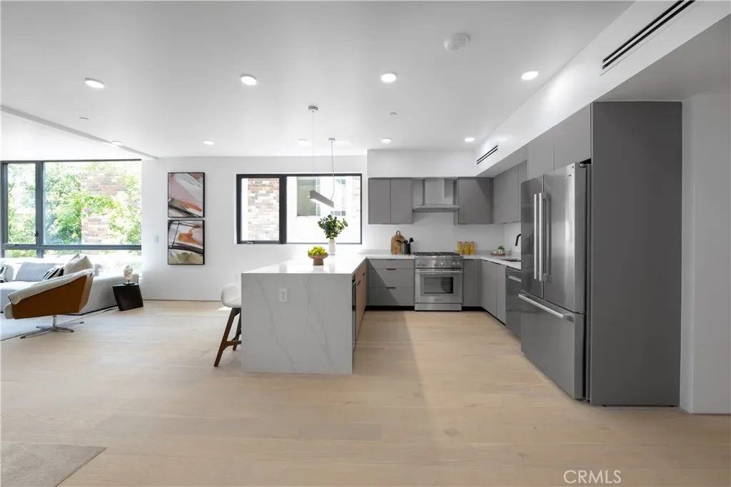 2025 Ultra-Modern Luxury Condominiums in Prime Westwood. Welcome to 1361 Kelton Avenue, Westwood, CA 90024 a brand-new 2025 architectural masterpiece featuring 15 ultra-modern residences in one of Los Angeles most sought-after neighborhoods. Located on a quiet, tree-lined street just moments from UCLA, Westwood Village, dining, shopping, and cultural attractions. The building offers a variety of floor plans including 1-bedroom, 2-bedroom, and three penthouses with lofts and very high ceilings. This featured 2BR/2BA residence boasts nearly 1,300 sq ft, oversized balcony, oversized black-framed windows, solid wood doors, hardwood floors, custom built-ins, and luxury custom tile. The designer kitchen features European cabinetry, quartz countertops, and premium Thermador appliances. The primary suite includes a walk-in shower and a walk-in closet. Building amenities include a secured parking garage, assigned parking, elevator, elegant high-ceiling lobby, and penthouse rooftops showcasing panoramic city and mountain views. Prime Westwood location near Beverly Hills, Century City, Santa Monica, and world-class amenities. Experience modern architecture, timeless elegance, and exceptional craftsmanship all in one address.