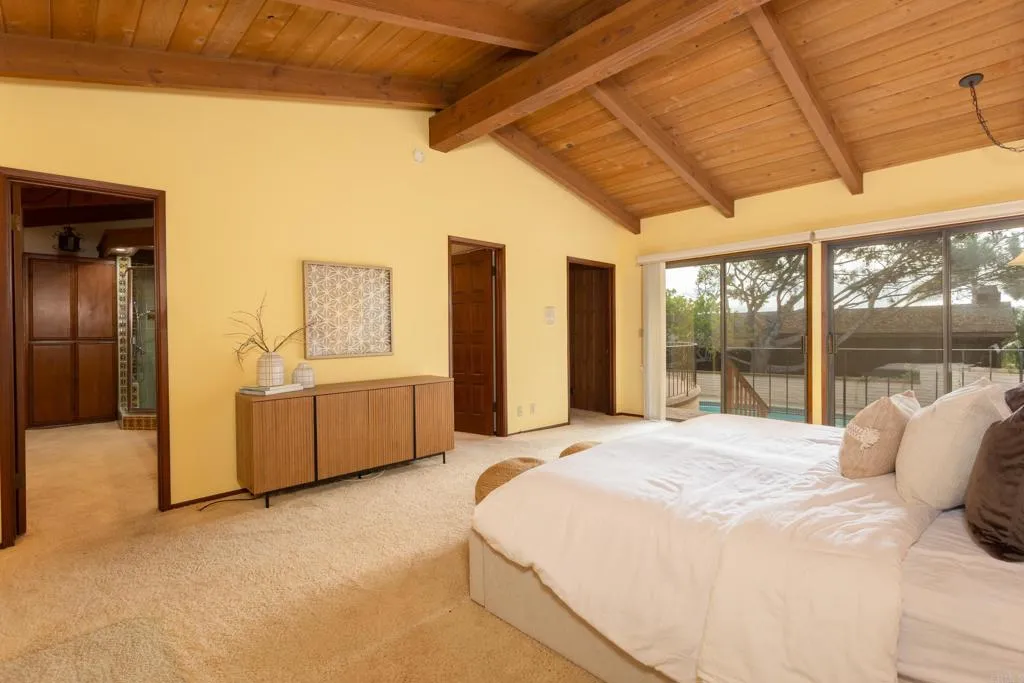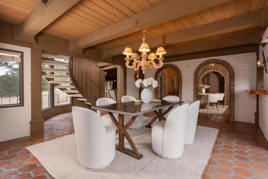 Experience the epitome of timeless elegance with this stunning Adobe residence crafted by Weir Brothers in 1979, offering breathtaking ocean views. Situated on a spacious 0.28-acre corner lot just four blocks from the pristine beaches of Del Mar, this exquisite 3-bedroom, 3-bathroom home encompasses 3,437 square feet of refined design and masterful craftsmanship. A gated entry leads to a welcoming courtyard, opening seamlessly to arched doorways that invite you inside. The interior is illuminated by graceful Gothic-style chandeliers and light fixtures, highlighting the open-concept family room and spectacular ocean views. The spacious living areas include a formal dining room, a cozy breakfast nook, a generous family room, and an elegant loft/libraryeach capturing the serene coastal landscape. The primary suite boasts dual vanities, separate closets, and ocean views, creating a private retreat. Outdoors, enjoy wrap-around decks nestled among mature pines and overlooking the sparkling ocean. The meticulously landscaped yard features a pool and Jacuzzi, perfect for summer entertaining, as well as a tranquil side yard with mature plantings and a peaceful sitting area. Additional amenities include a brand-new refrigerator and washer and dryer. This distinguished family home seamlessly combines enduring architectural beauty with modern comforts, embodying the iconic beachside lifestyle of Del Mar.