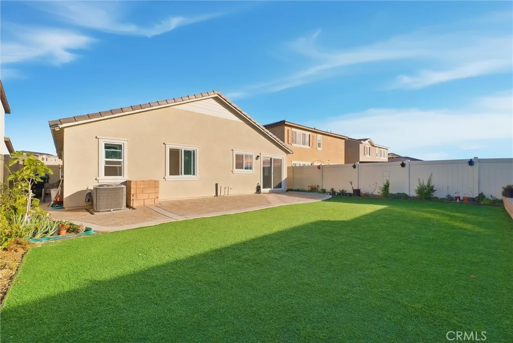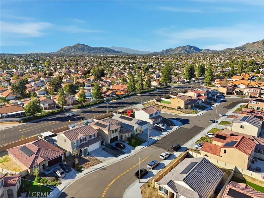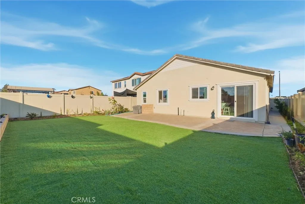Less than two years new, this craftsman-style single-level home is located in the desirable Skylar Pointe community of Moreno Valley and is surrounded by newer construction. One of the standout benefits of this home is that it is fully landscaped and truly move-in ready. The bright, open floor plan offers 3 bedrooms, 2 bathrooms, approximately 1,335 square feet of living space, a 2-car garage, a generous 4,859 square foot lot, and PAID-OFF SOLAR, delivering excellent energy savings. The home welcomes you with an extra-long driveway and clean, modern curb appeal, complemented by a well-maintained exterior and low-maintenance landscaping. Inside, the entry opens to a light-filled great room with an open-concept layout designed for everyday living and entertaining. The kitchen features white shaker-style cabinetry, granite countertops, a large center island with seating, stainless steel appliances, recessed lighting, and sliding glass doors that open to the backyard, creating an easy indoor-outdoor flow. The primary suite is spacious and includes a walk-in closet, while the ensuite bathroom offers dual sinks with a white shaker vanity and a walk-in shower with glass enclosure. Two additional bedrooms are comfortably sized, the hall bathroom includes a white shaker wood vanity with a shower-over-tub, and the indoor laundry room adds convenience. Upgrades throughout the home include luxury vinyl plank flooring, carpeted bedrooms, LED recessed lighting, a tankless water heater, upgraded light switches, SMART HOME Technology that allows energy-related systems to be controlled remo