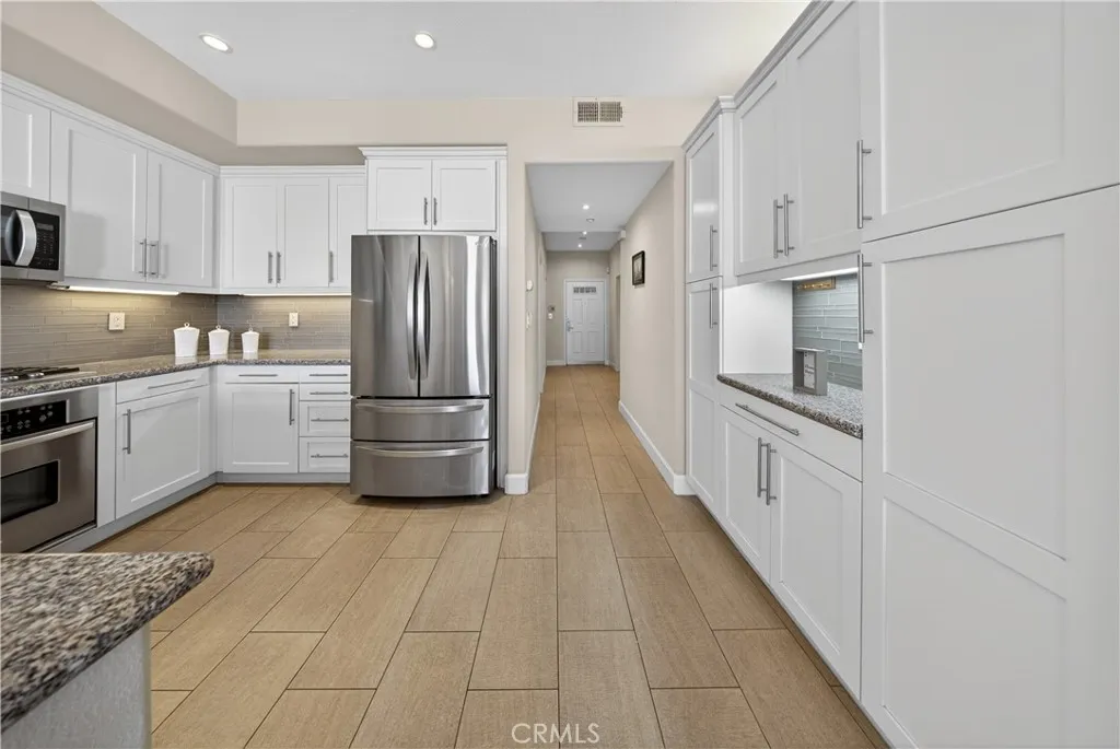 Exceptional direct-on-the-sand residence offering unobstructed ocean and coastline views and an elevated coastal lifestyle. Contemporary tile flooring flows throughout the main living areas, complemented by clean architectural lines, recessed lighting, and refined finishes. The guest bedroom and dedicated office feature custom window treatments, modern ceiling fans, and built-in cabinetry, including a custom workspace ideal for todays work-from-home needs. The guest bath showcases custom tile flooring extending into the shower, classic subway tile, refined fixtures, and a built-in niche. Shaker-style custom cabinetry is featured throughout the home. The kitchen offers stainless steel appliances, a five-burner stove, farmhouse-style stainless sink, and custom tile backsplashideal for everyday living and entertaining. The living room is highlighted by three floor-to-ceiling windows framing breathtaking ocean views. The primary suite offers sweeping Pacific Ocean views, plush low-pile carpet, custom lighting, a spa-inspired bath with walk-in shower, bench, niche, customized walk-in closet, and additional built-in storage. Residents enjoy resort-style amenities including a rooftop pool, jacuzzi, BBQ area, fireplace, and panoramic sunset views, along with a community room for private events. Building amenities include a full-time Front Desk Manager during business hours, a daytime security committee, and an on-site security guard from 11:00 PM to 7:00 AM.