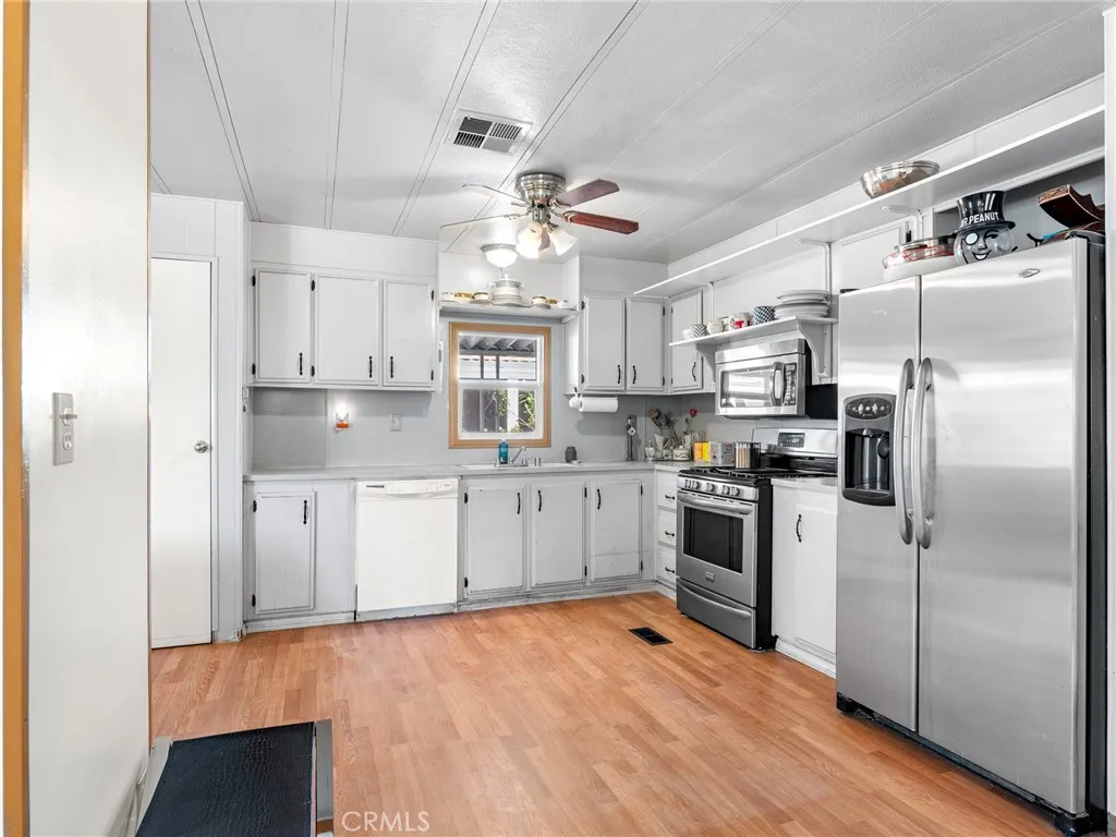 Beautiful Double-Wide in a Desirable Park! This spacious mobile home features an inviting open floor plan with abundant natural light throughout. The kitchen offers plenty of counter space and storage. Enjoy newer floors, fresh paint, and updated windows. 2 big storage units for lots of storage. Please note this home is located in a 55+community and we must have park approval before any offer can be accepted.