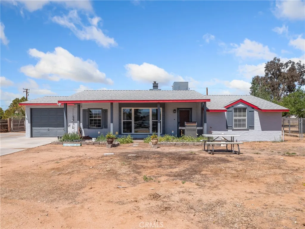 Welcome to your dream home in the highly desirable Apple Valley! Dont let the age fool youthis fully remodeled single-level ranch-style home is a true gem. With fresh paint inside and out, it blends modern elegance with comfortable living. Step inside to a bright and airy open floor plan filled with natural light, creating a warm and inviting atmosphere. The heart of the home is the expansive 20 x 17 family room featuring surround sound, oversized windows, and a sliding door that brings the outdoors in. The beautifully updated kitchen is a chefs dream, showcasing crisp white cabinetry, stunning quartz countertops, a convenient pot filler above the stove, and top-of-the-line appliancesperfect for entertaining guests. Updated bathrooms, tons of storage, premium luxury vinyl plank (LVP) flooring flows seamlessly throughout the main living areas, while plush new carpeting adds comfort to the bedrooms. Additional features include front automatic entry gates, oversized 6 thick concrete driveway, newer 200-amp main electrical panel, Noritz tankless water heater, newer LED lighting with dimmable switches, ceiling fans & Quiet Cool 3-speed whole house fan, 24,000 BTU ductless mini split in family room, newer dual-pane windows & large evaporative cooler, and recently installed upgraded HVAC system with R-8 ducting. Workshop & Outdoor Amenities include horse property zoning, dog run with heated doghouse and shade cover, RV gate and access, two large metal sheds, workshop with 100-amp subpanel, 50-amp welding outlets, lighting, and water, overhead chain fall hoist on a full-length trol
