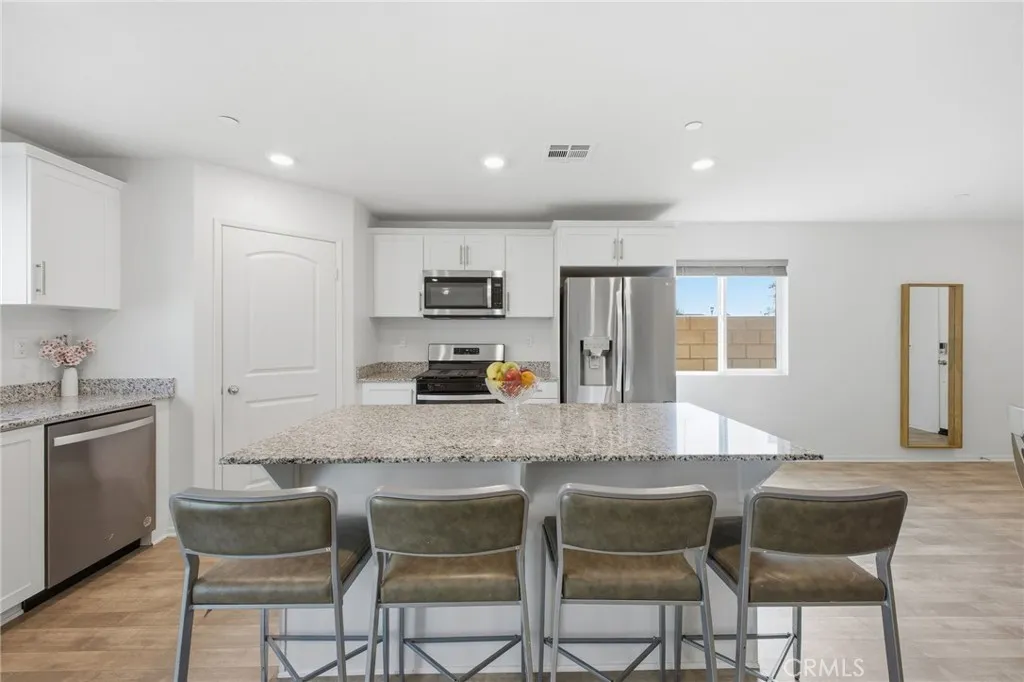 Absolutely Gorgeous!! This amazing two-story view home is the epitome of turnkey. The home is nestled in a stellar area of Moreno Valley in the highly coveted community of Stella Pointe which provides relaxed style living and beautiful aesthetics. This home is ideally located on a corner lot, near tons of parking, and next to a beautiful & large park. The curb side appeal of this home is phenomenal with its landscaping and attention to detail. The stunning low maintenance backyard is a blank slate, serene, and an entertainer's delight. It has room for kids & pets to play and parents to entertain and BBQ. The home is equally amazing and meticulously cared for. Pride of ownership permeates every facet of this house as it boasts many upgrades and amenities such as; bright and open floor plan, stunning vinyl and carpet flooring, baseboards, tall ceilings, recessed lighting, window treatments, huge open kitchen with custom granite countertops and backsplash, spacious walk-in pantry, shaker cabinets, stainless steel appliances, bathroom downstairs, large loft, spacious bedrooms with full closets, ideal master bedroom with huge walk-in closet, 2 car garage, PAID OFF SOLAR, home automation, and so much more. Words and pictures can never convey the beauty this home and community have to offer, come and see for yourself!!