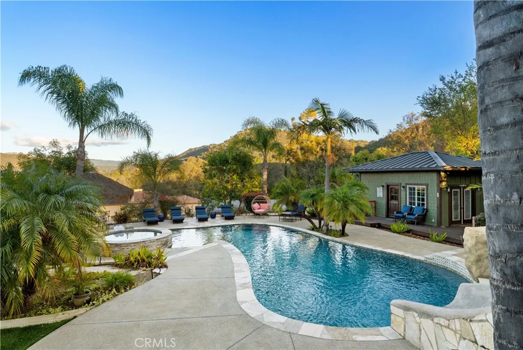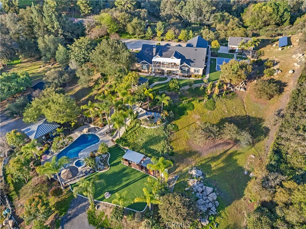 A True Legacy Property for Generations to Enjoy! Elegant and Timeless Estate Impeccably Maintained and Beautifully Designed and Curated, Located in Private Gated Community of Only Four Homes in Charming Park-like Settings. Beautiful Panoramic Views of Surrounding Hills, Privacy and Tranquility. Large Driveway Leads to Inviting Porch and Double Door Entry, Piano Room, Formal Dining Room and Huge Great Room with Fireplace. Chef's Kitchen Includes Alderwood Cabinets, Quartzite Counters and Backsplash, 48" Thermador Range, Walk-In Pantry, Breakfast Bar, Center Island, Custom Built-In Breakfast Nook and Your Kitchen Window Offers Picture Perfect Views. This Charming Home Lives Like a Single Story, with Four Spacious Bedrooms and Office on the Main Floor. Luxurious Primary Suite Includes Fireplace, Window Seat, Large Custom Walk-In Closet, Large Soaking Tub, Dual Sinks, Vanity, Walk-In Shower with Dual Shower Heads. Upstairs You'll Find Large Bonus/Theatre Room, Bunk Room with Four Beds, Bathroom, Large Storage Room and Oversized Balcony with Sweeping Views. This Truly Extraordinary Property Offers Resort Style Pool, with 50-Foot Waterslide, Large Spa, Reef, Custom Palapa, Multiple Patios, Custom-Built Timber Framed Guest House, BBQ Island with Wood-Burning Pizza Oven, Putting Green, Green House, Pickleball/Sports Court, True Treehouse, Zipline, Mature Fruit Trees, Majestic Oak Trees, Beautiful Landscape, Metal Carport for Tractors and Toys and Ample and Cleared Space for Horse Corral. The Main House Includes Oversized Four Car Garage with Epoxy Flooring. This One of a Kind Prope