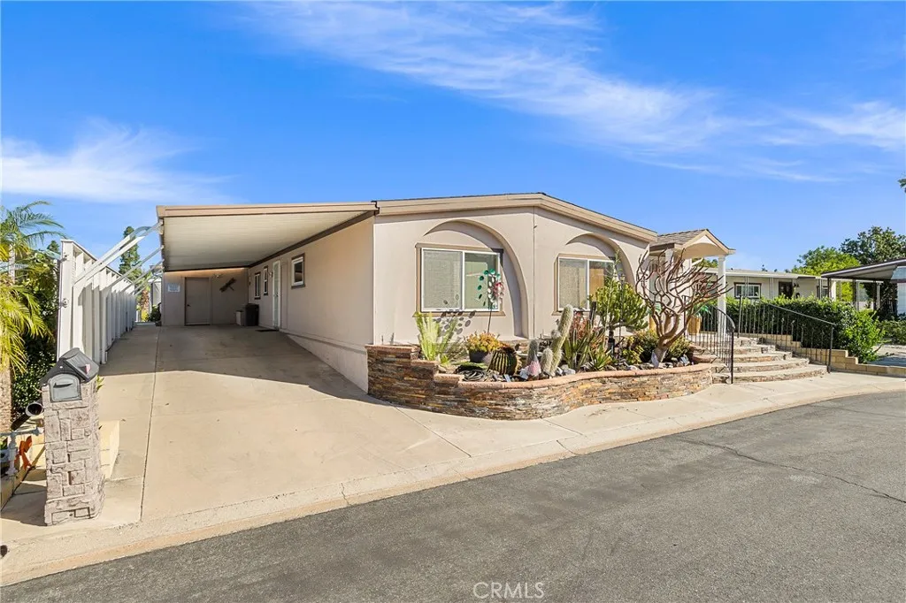 This is a golden opportunity to own one of the most desirable homes in one of Coronas most convenient senior communitiesand yes, you own the land. Thats right. This beautifully maintained, larger triple-wide manufactured home on private land lives and feels like a traditional single-family residence, with space, flow, and thoughtful design throughout. Inside, the living room creates its own inviting vibe with a custom-built entertainment center, opening seamlessly to the formal dining area. Here, charming depression-glassstyle window adds character and warmthperfect for hosting memorable gatherings. The kitchen is a true showstopper, designed for hosting and gathering. A long granite island, abundant cabinetry, and granite countertops create both beauty and function. Theres even a cozy lounge-style seating area, making this the heart of the home where conversations linger and guests feel right at home. The spacious primary suite is a private retreat, featuring its own side deckideal for quiet morning coffee or peaceful yoga moments. The ensuite bathroom offers double sinks, a large soaking tub, and a walk-in shower with a safety handle, thoughtfully designed for comfort and ease. With three bedrooms and two bathrooms, theres plenty of room for guests or hobbies. The second bathroom is a convenient bathroom, shared between a bedroom and the laundry areaperfect for visitors. An additional side space is currently used as an office but can easily flex as storage or a creative nook. The third bedroom is ideal for overnight company or a hobby room. Outside, youll find extra exter