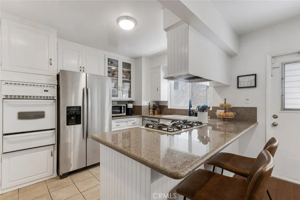 Beautifully maintained and thoughtfully updated 2 bed, 2 bath, 2-story townhome in a small, well-kept Sherman Oaks community, offers the ease of move-in ready condition and the everyday convenience of one of LAs most loved neighborhoods. Gated entry opens to a private front courtyard with budding bougainvillea tree, perfect for morning coffee or evening entertaining. Enter into a bright, spacious, open floor plan living space with hardwood floors, recessed lighting, and abundant natural light throughout. The living room offers a view of the front courtyard through the large picture window; a generous storage space tucked away; and a unique alcove for display, kids play, pet area, or other creative use. Move seamlessly into the dining area and adjacent kitchen, fully equipped with granite counters, ample white cabinets, breakfast bar seating, and a convenient, in-unit laundry area. A remodeled downstairs bath features stylish hex-tile flooring, a pedestal sink, and a contemporary updated shower ideal for guests. Upstairs, two spacious bedrooms offer hardwood floors, recessed lighting, and contemporary ceiling fans. The bright primary bedroom boasts a dressing area and extra-large picture window while the second bedroom offers a closet with custom built-ins for effortless storage efficiency. They share a completely remodeled full bath with hex-tile floors, dual-sink vanity, and an oversized spa-style shower with multiple shower heads. The HVAC unit was recently replaced, and the property has one assigned parking space in a community carport with additional storage above. HOA